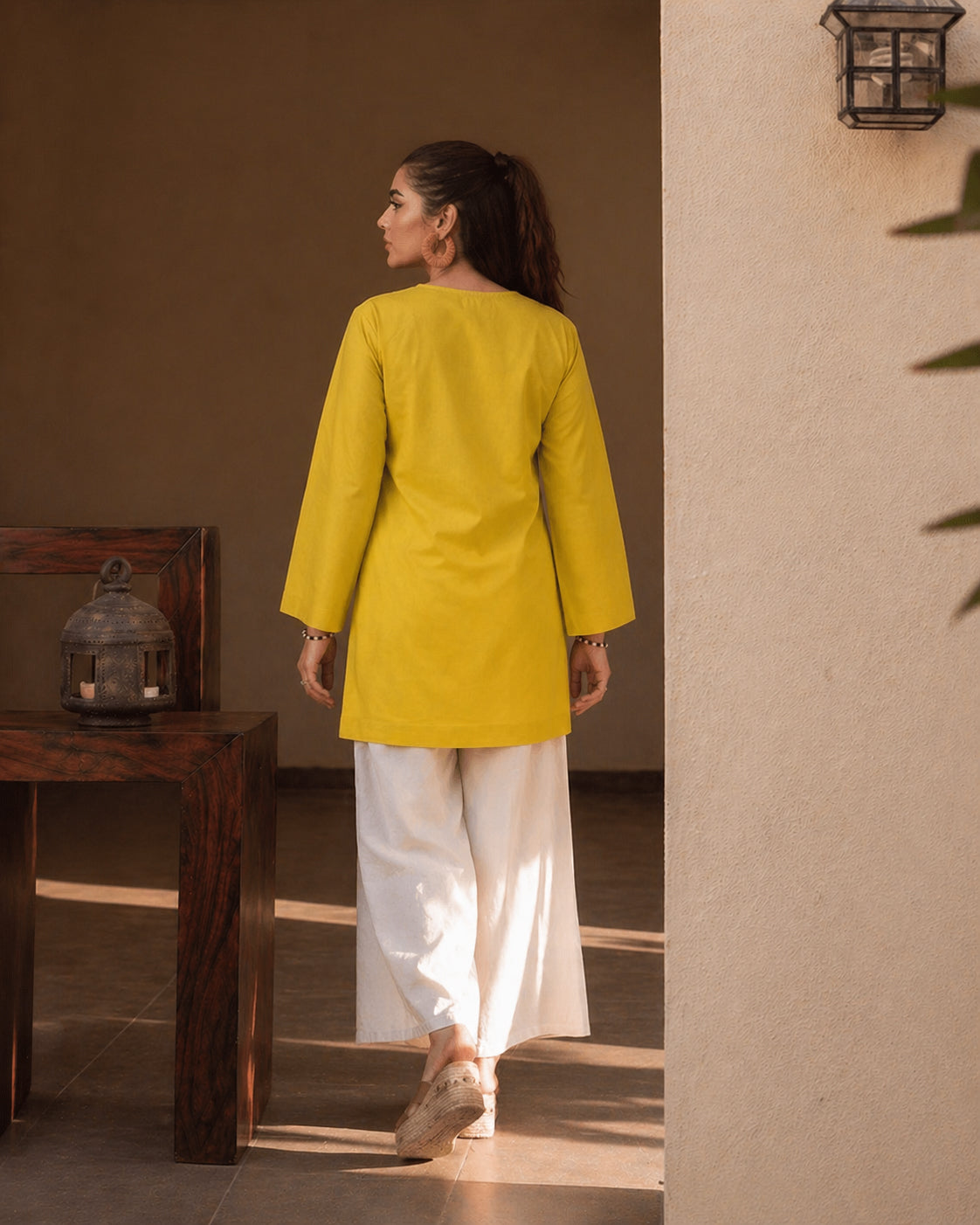 This Yellow Printed Linen Coord Set is designed for comfort and is perfect for the summer season. Made from high-quality linen, it is both breathable and stylish. With its flowy design and vibrant print, this set is perfect for any occasion. Stay cool and comfortable in this summer-friendly ensemble.