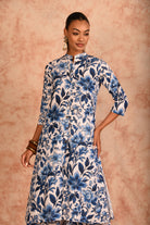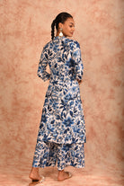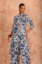 White blue printed linen coord set
