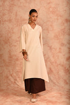 This Off White brown linen coord set is the perfect summer wardrobe essential. Made from high quality linen, it is not only versatile but also flowy and lightweight. With its V neck design, it is both stylish and comfortable. Elevate your summer look with this must-have piece.