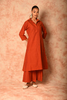 This Orange Linen coord set is ideal for the summer season. Made with comfortable and luxurious linen, it offers both style and comfort. The flowy design makes it perfect for any occasion, whether it's a casual day out or a special event. Stay cool and stylish with this versatile outfit.
