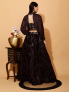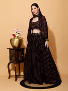 Pure GeorgetteDark Wine Crop Top Skirt With Choker Sleeves