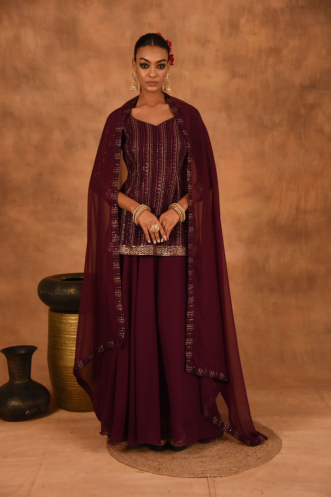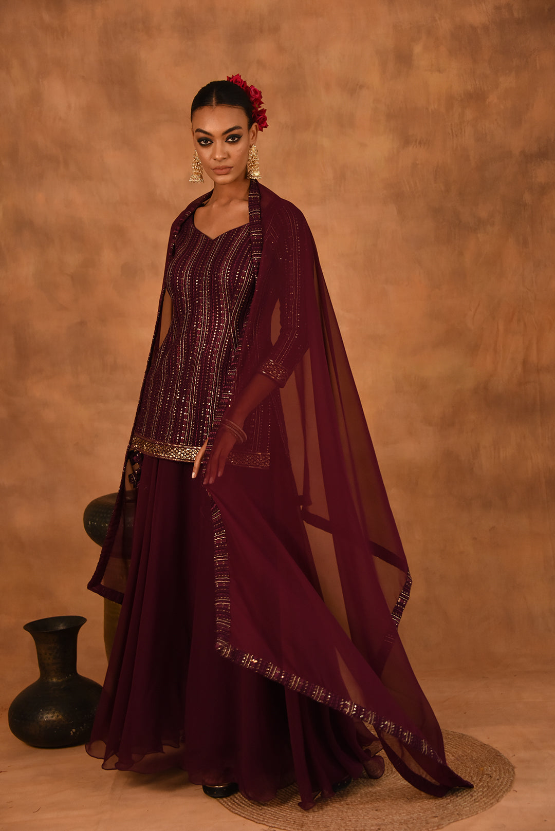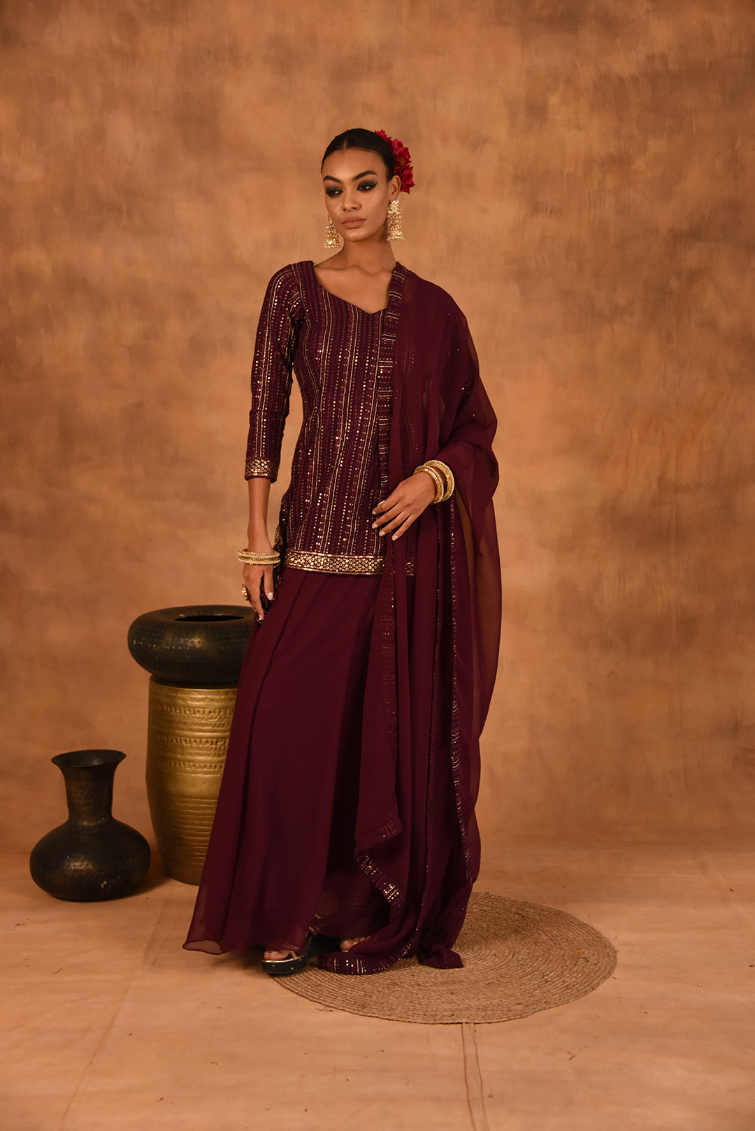 This GEORGETTE SHORT KURTI comes with a matching skirt and dupatta, perfect for creating a stylish and complete look. Made of high-quality georgette fabric, it offers a lightweight and comfortable fit. Elevate your style with this trendy and elegant outfit.