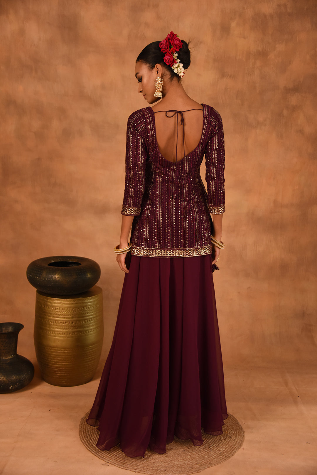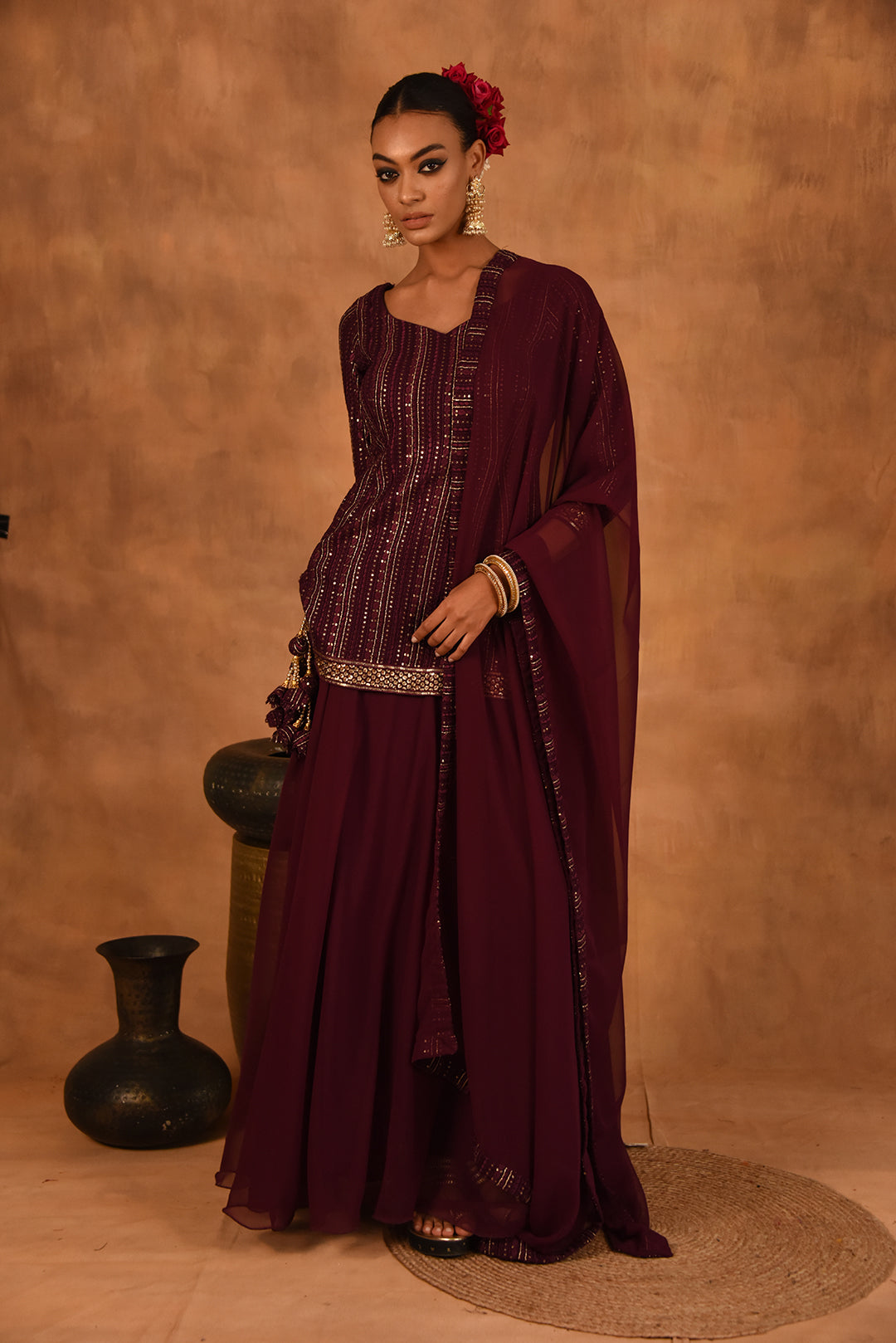 GEORGETTE SHORT KURTI WITH SKIRT AND DUPATTA