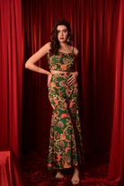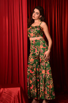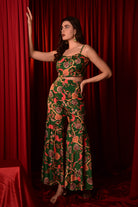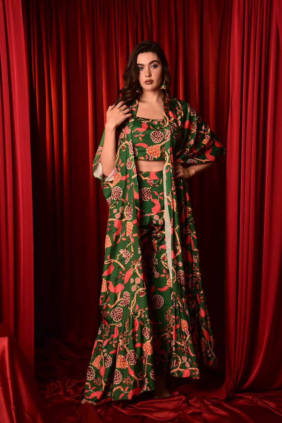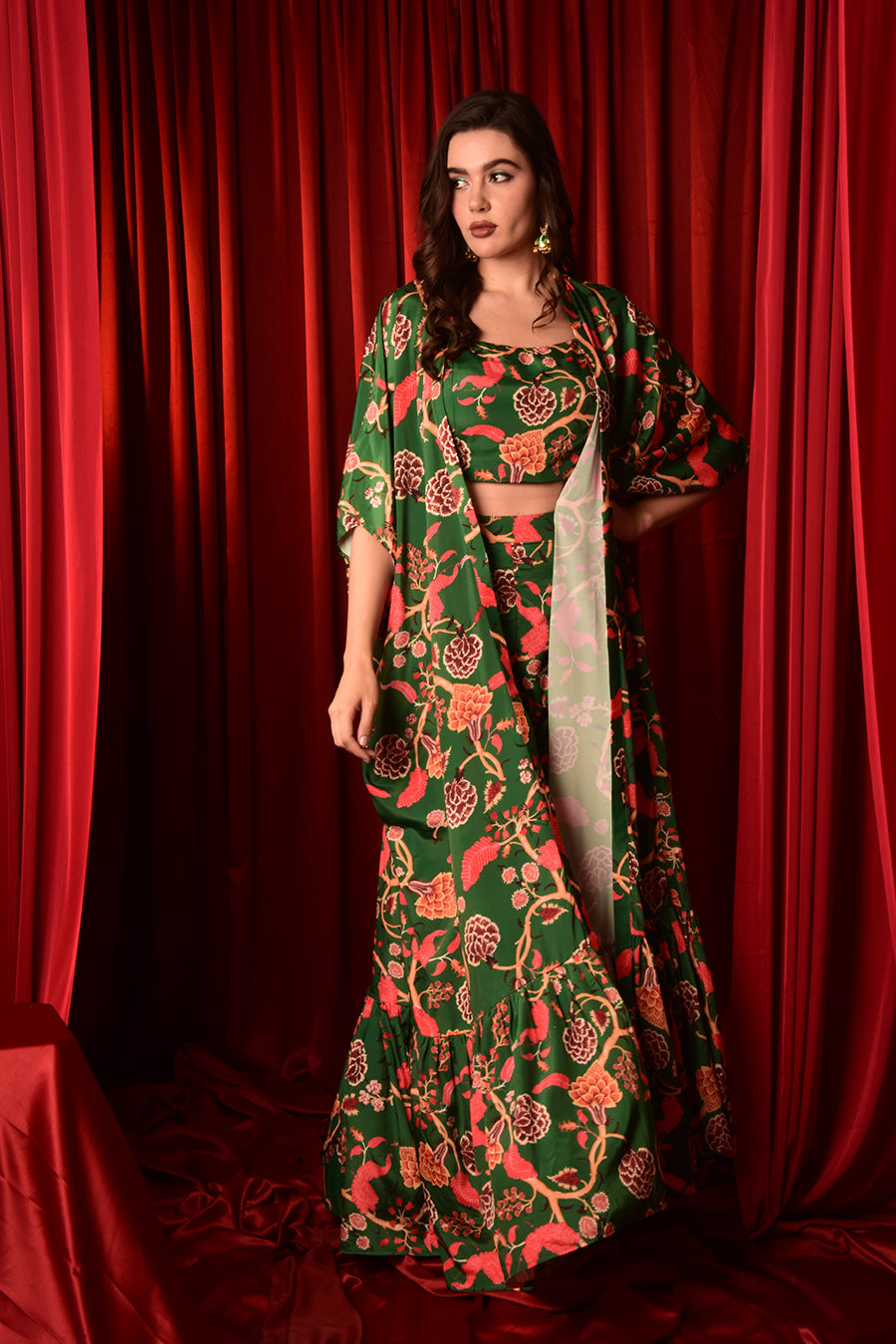 GREEN PRINTED CROP TOP PALAZZO WITH CAPE