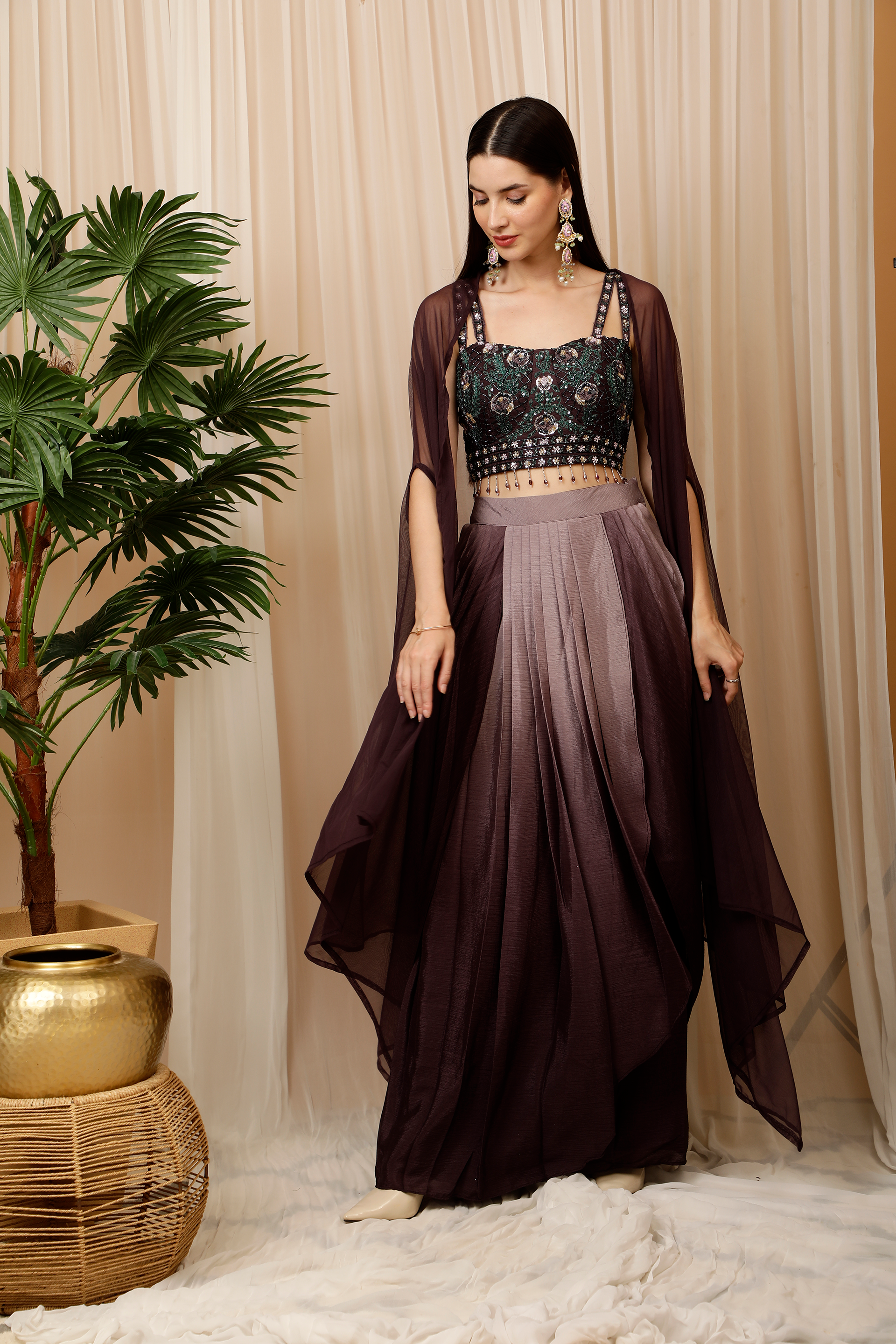 Ombre Purple Dhoti Skirt With Crop Top And Shrug