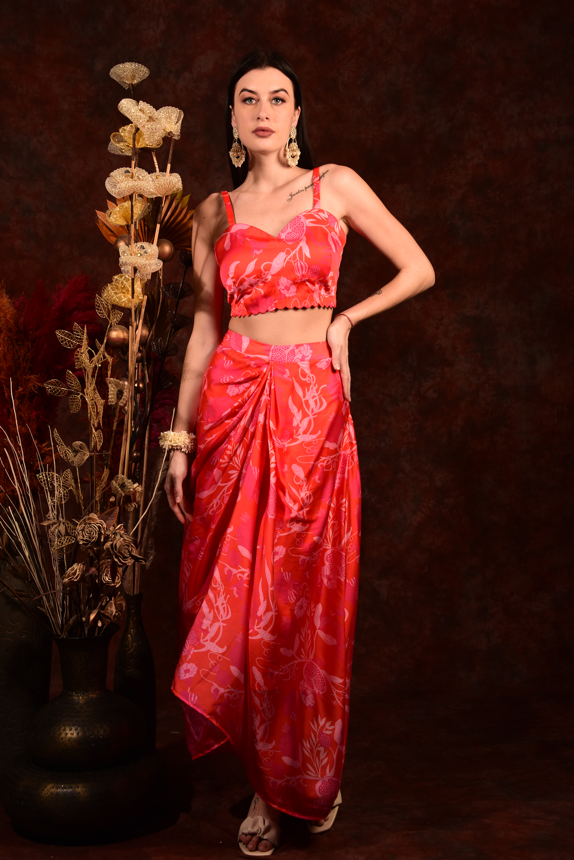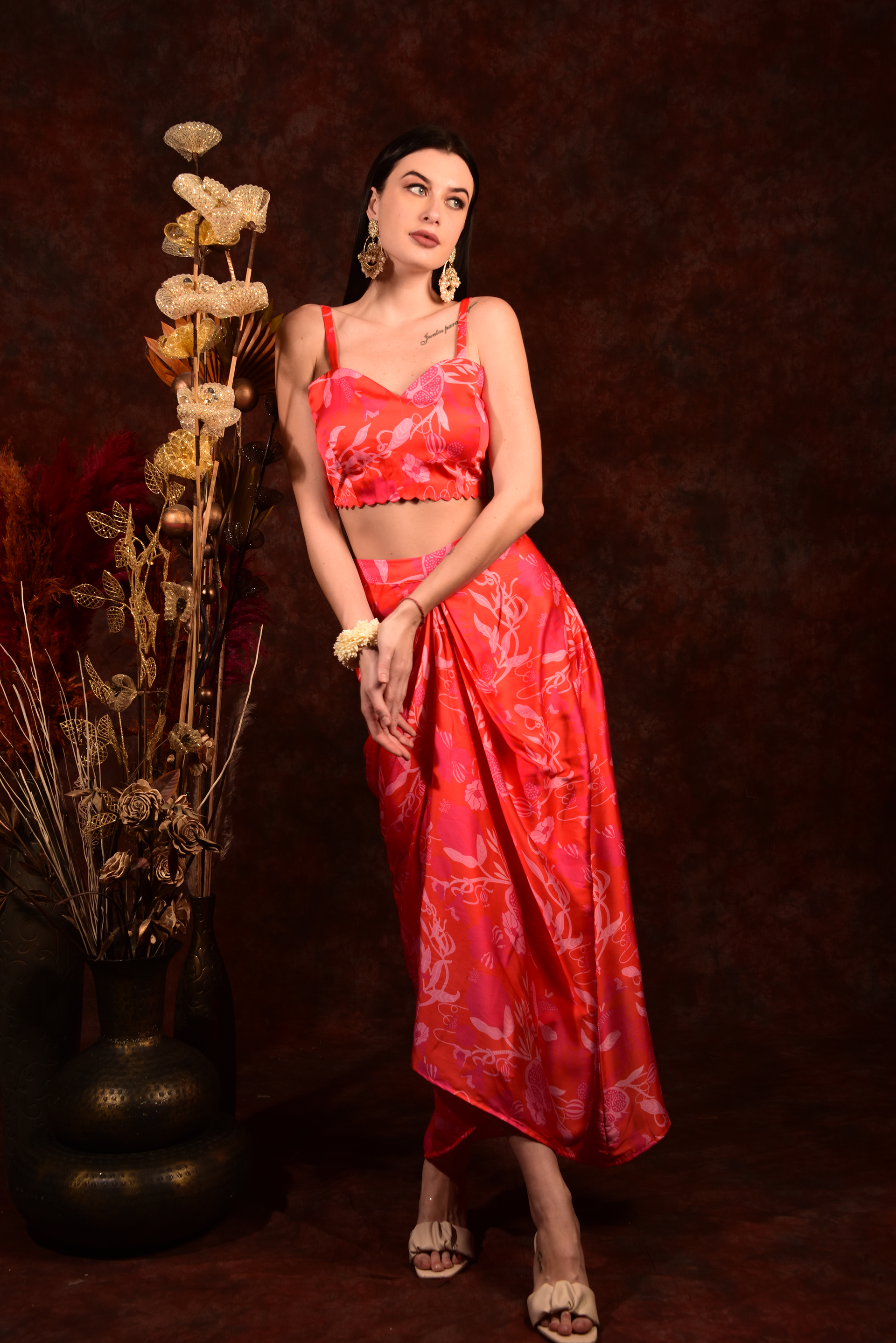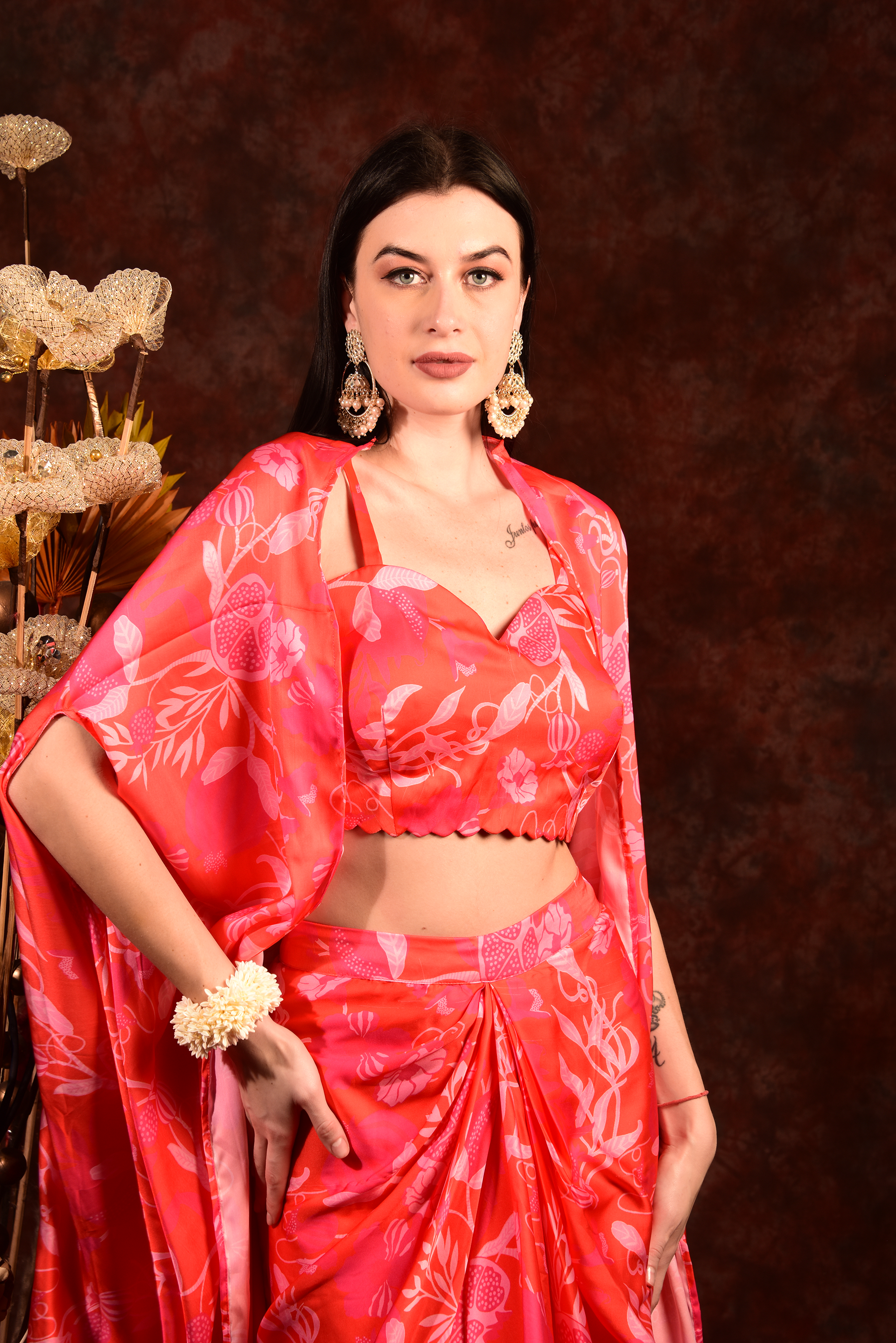 Transform your wardrobe with our Printed Crop top shrug and dhoti skirt combo! Featuring a unique print and versatile design, this outfit is perfect for any occasion. Say goodbye to boring outfits and hello to playful fashion with this must-have duo. (Limited stock available!)