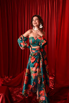 PRINTED DESIGNER CROP TOP WITH HIGH SLIT SKIRT
