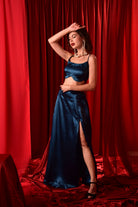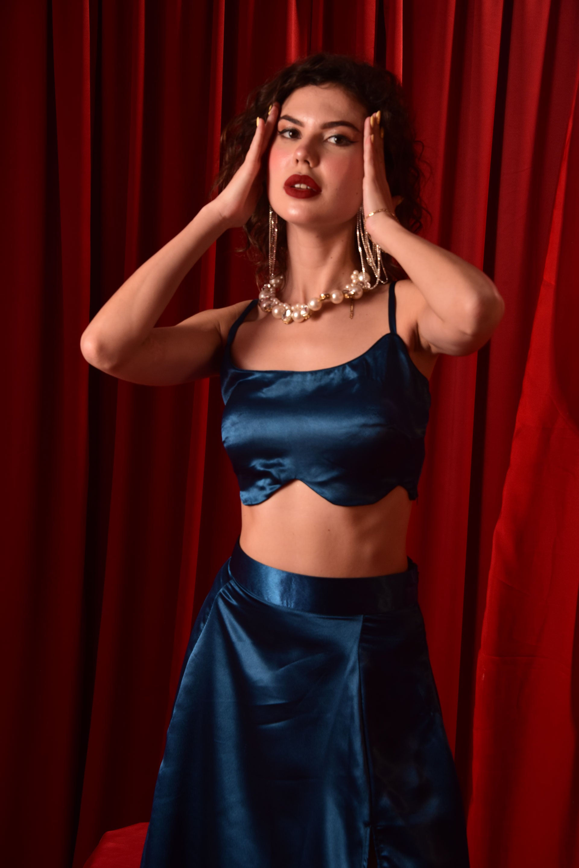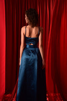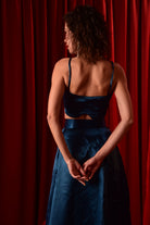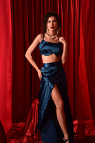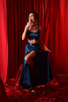 ROYAL BLUE CROP TOP SKIRT WITH HIGH SLIT SKIRT