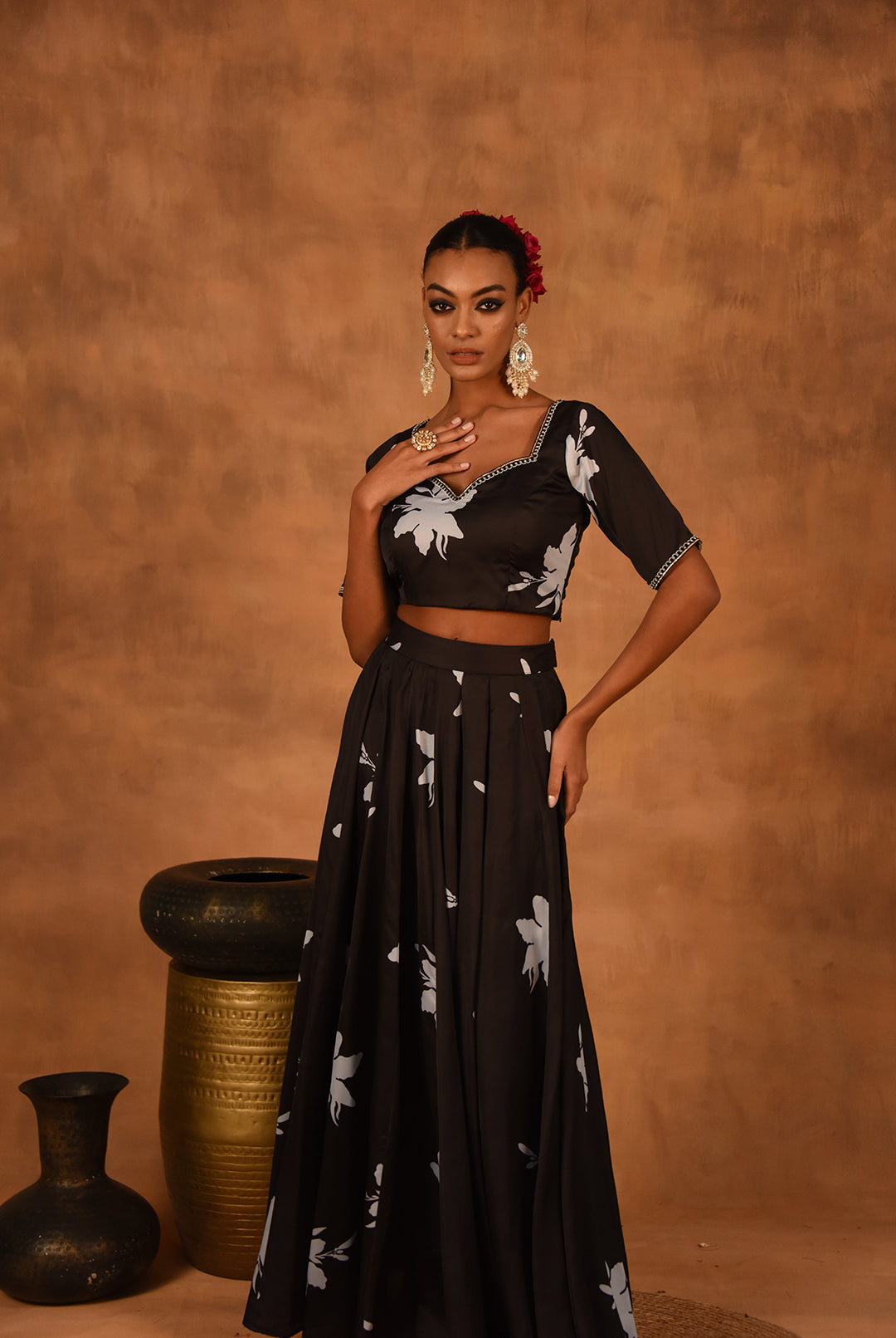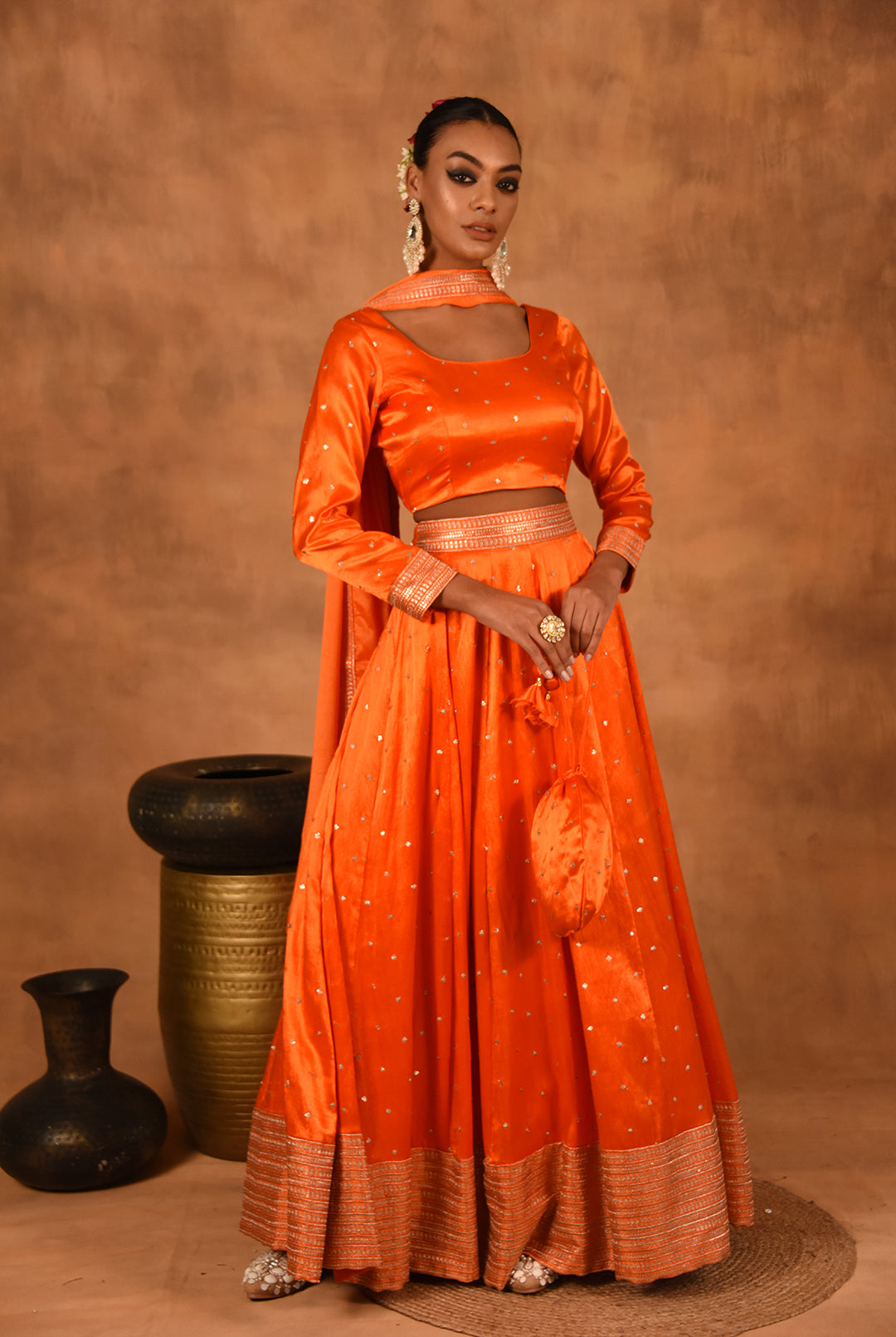 Crafted with meticulous attention to detail, our Lehengas showcase the rich heritage of Indian couture while infusing modern elements for a contemporary twist. Each ensemble is a masterpiece of design, featuring luxurious fabrics, intricate embellishments, and exquisite embroidery that capture the essence of opulence and sophistication.