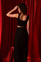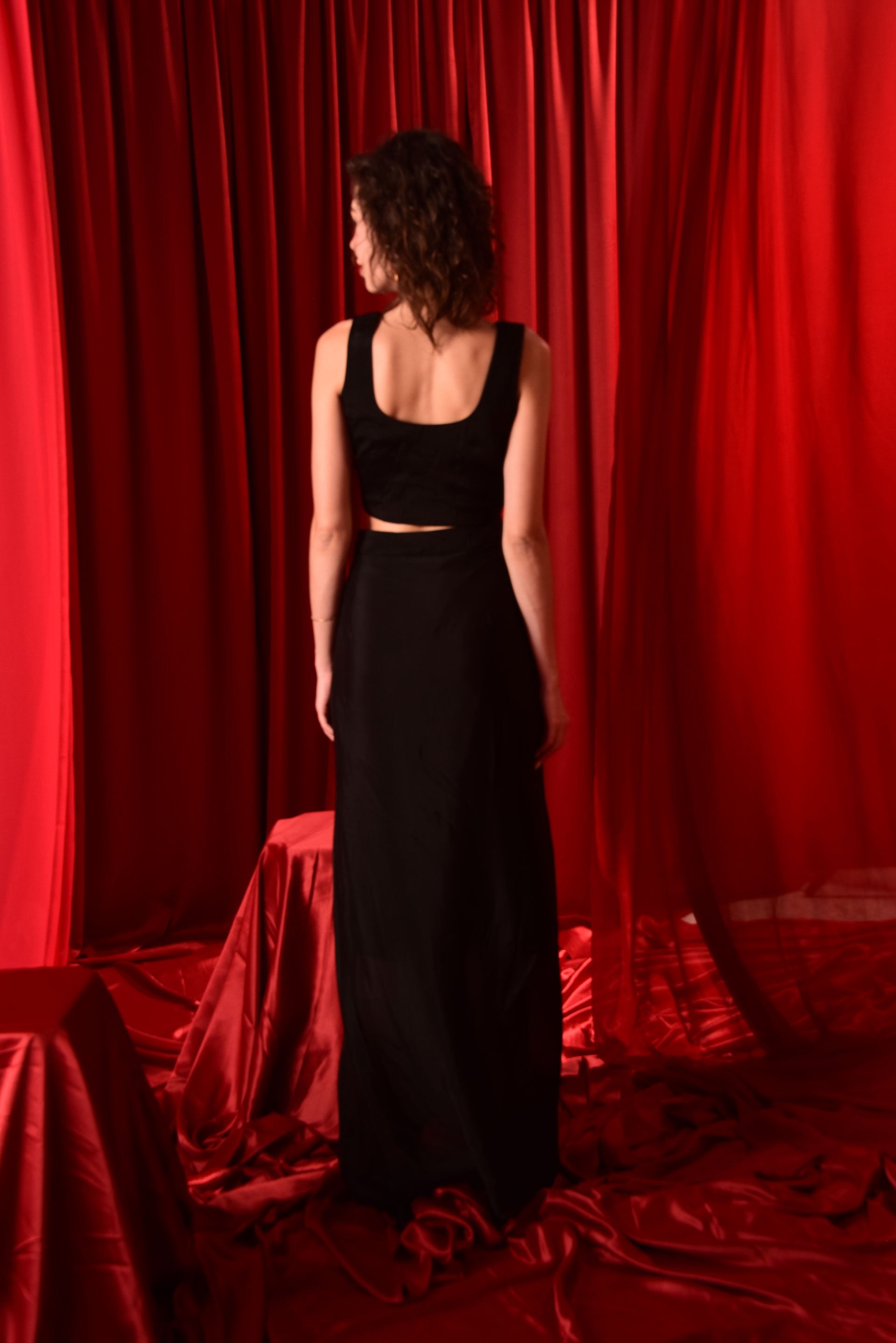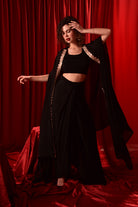 BLACK CROP-TOP DHOTI SKIRT WITH SHURG