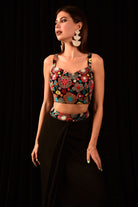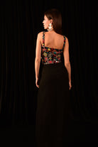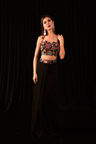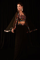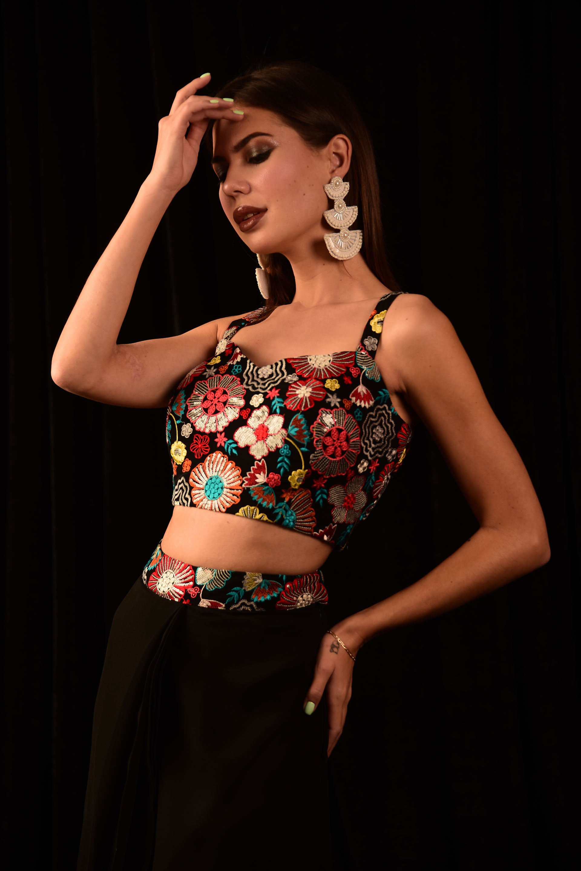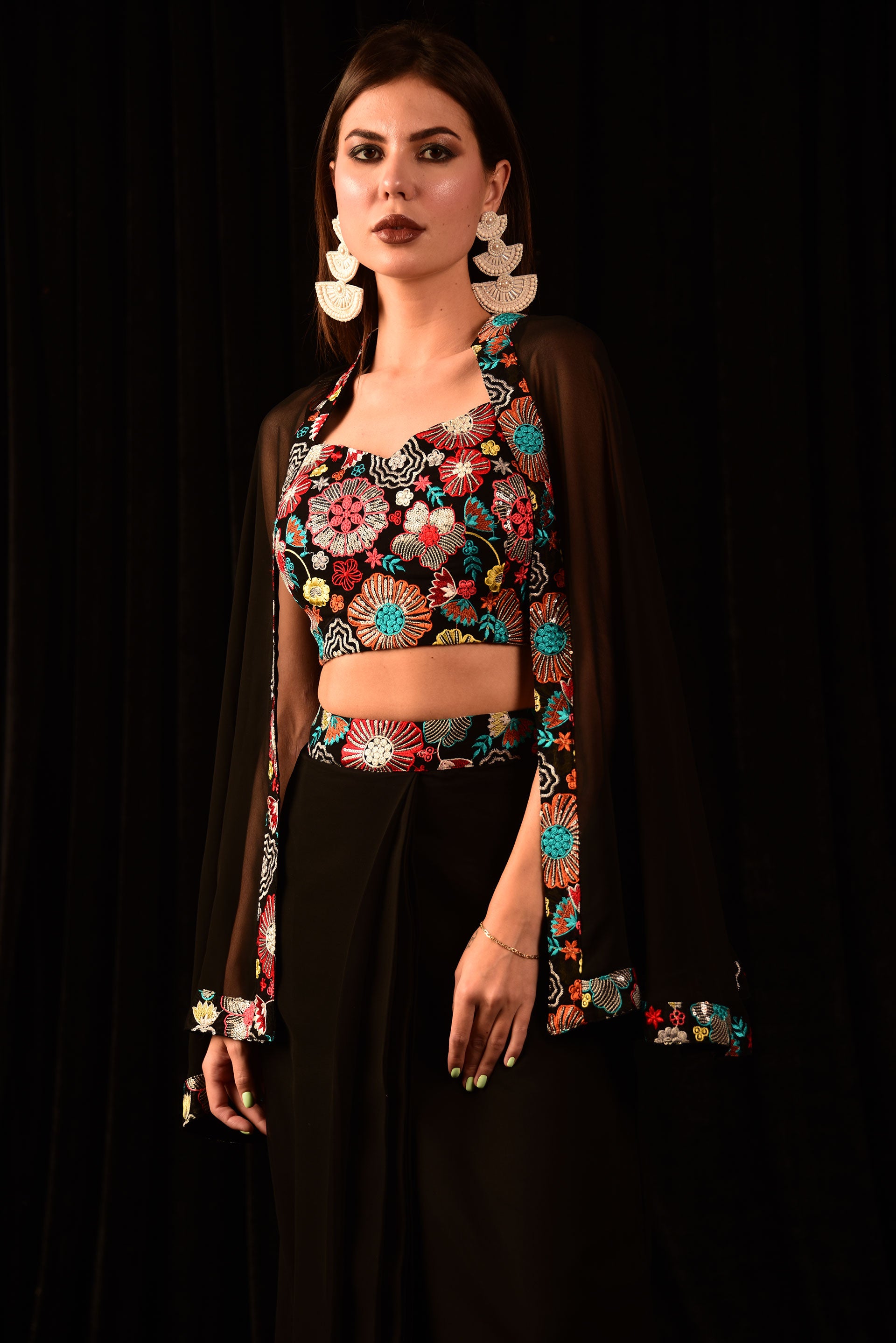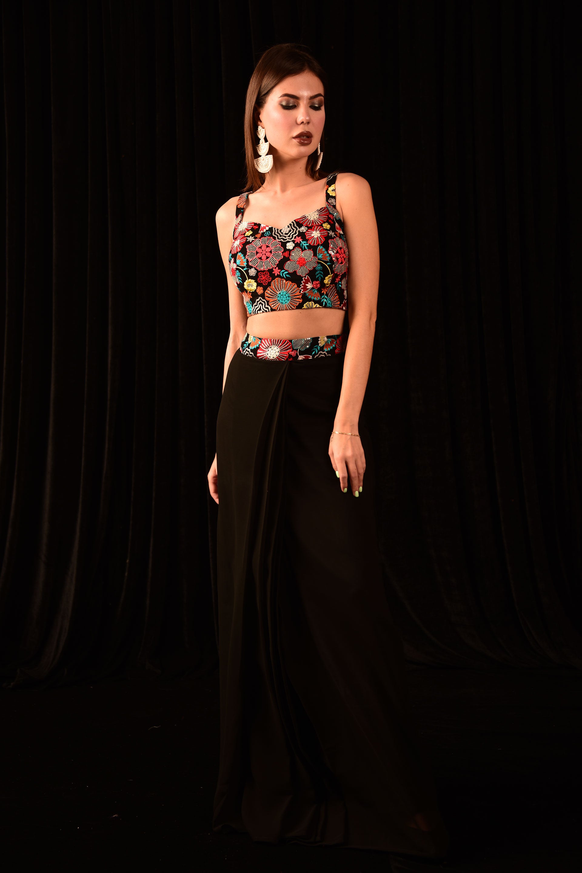 BLACK CROP TOP FLORAL SKIRT SHRUG
