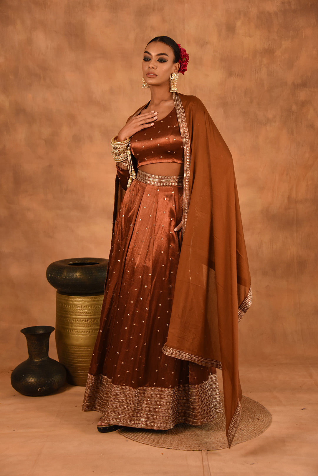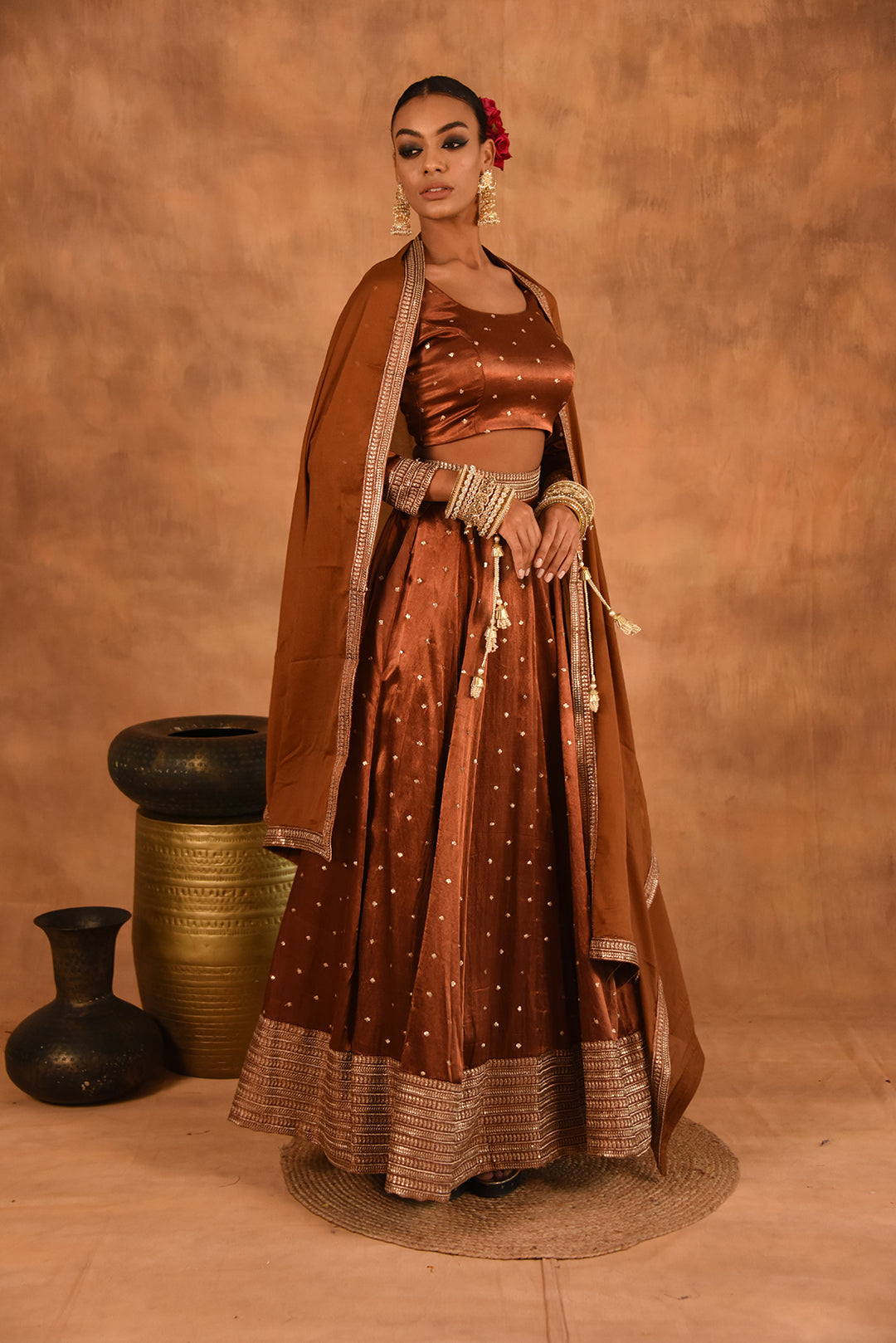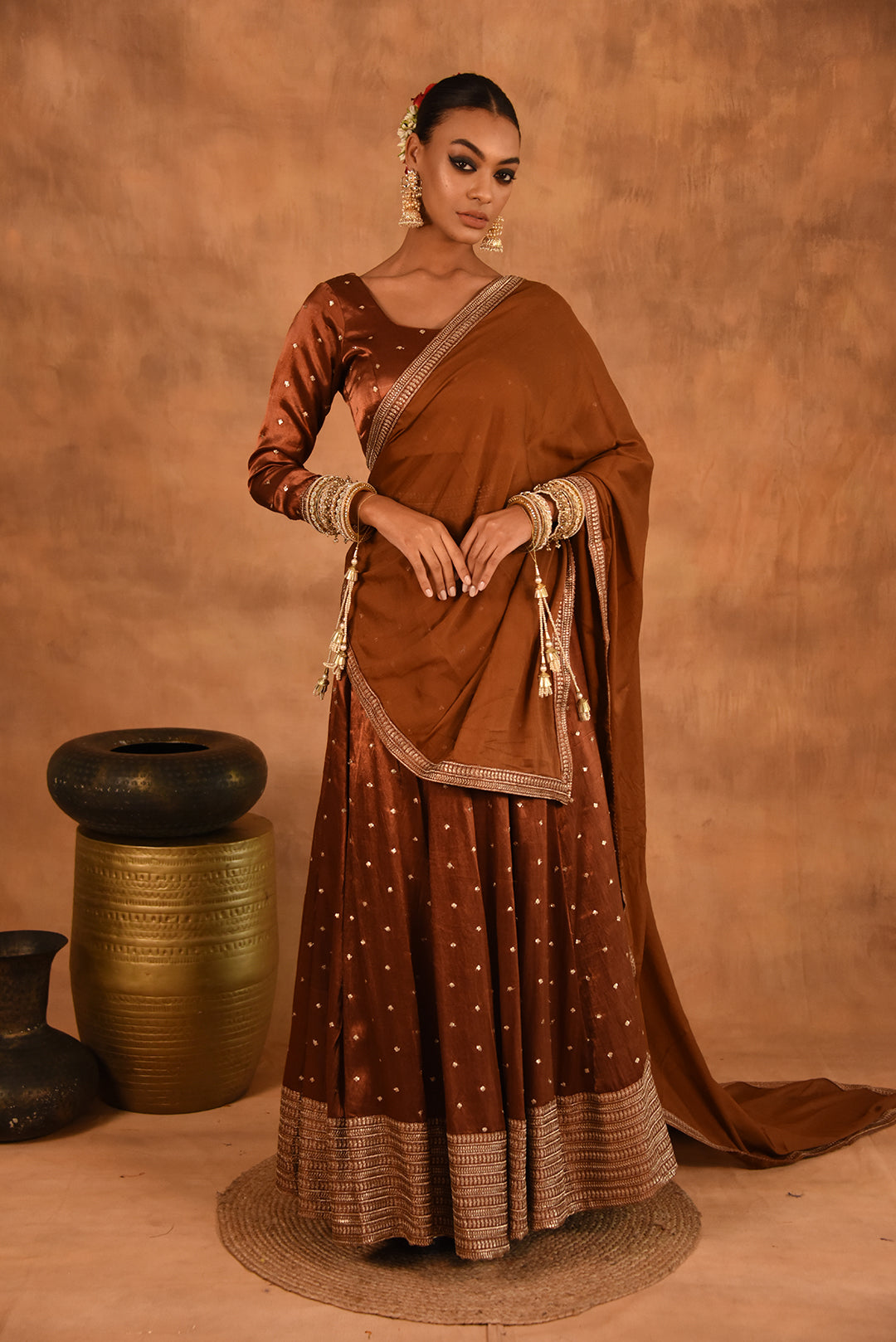 Brown Gajji Silk Lehenga Comes With Dupatta