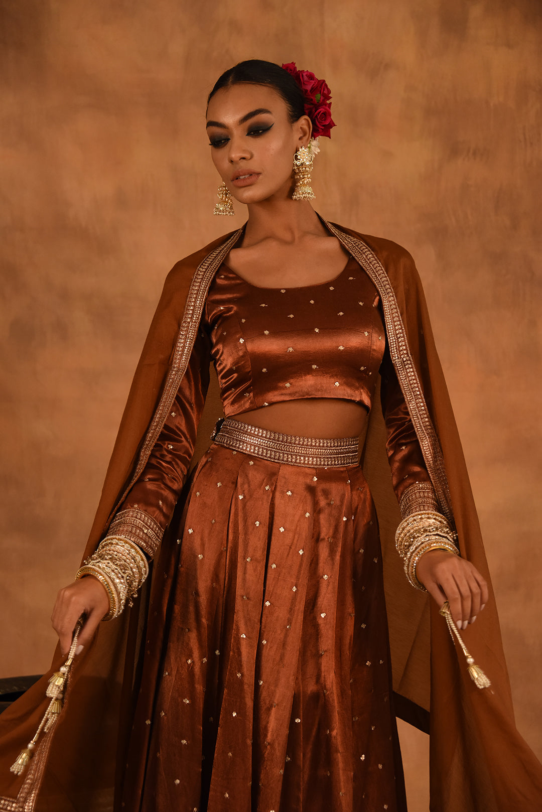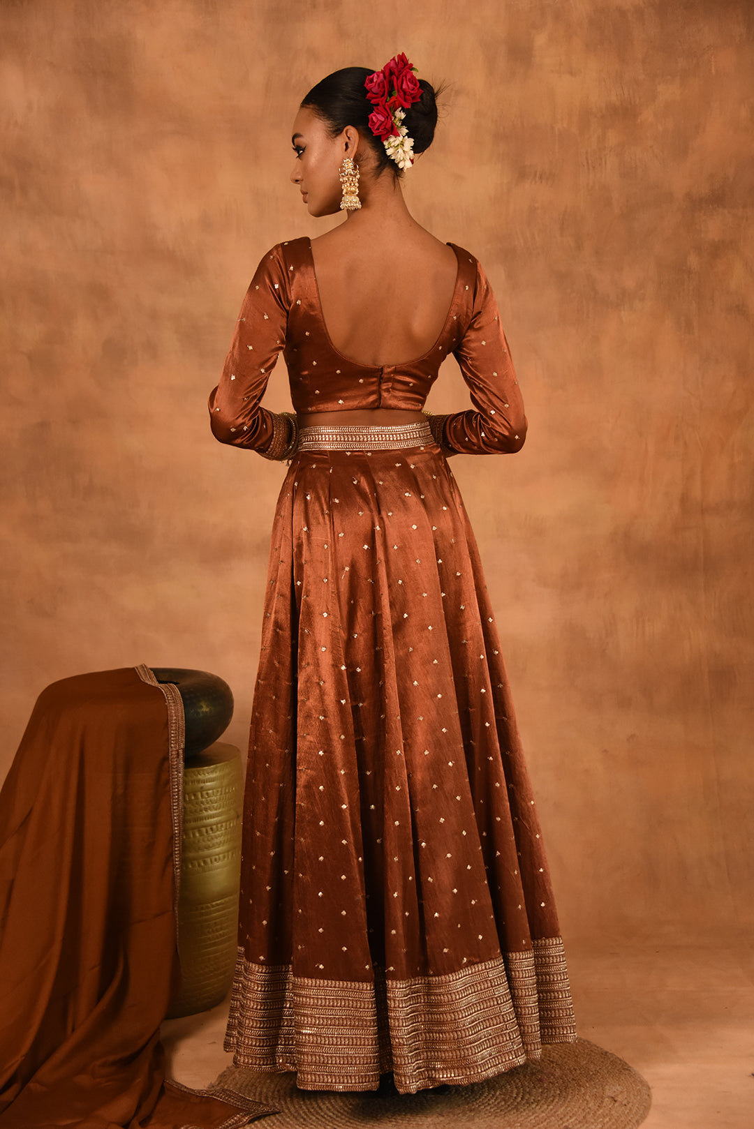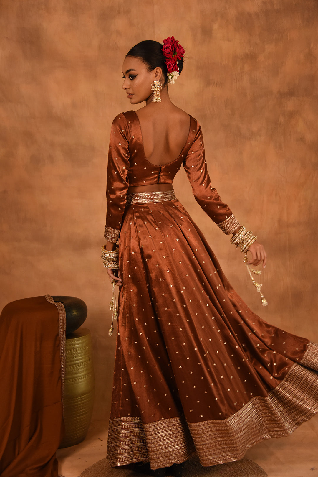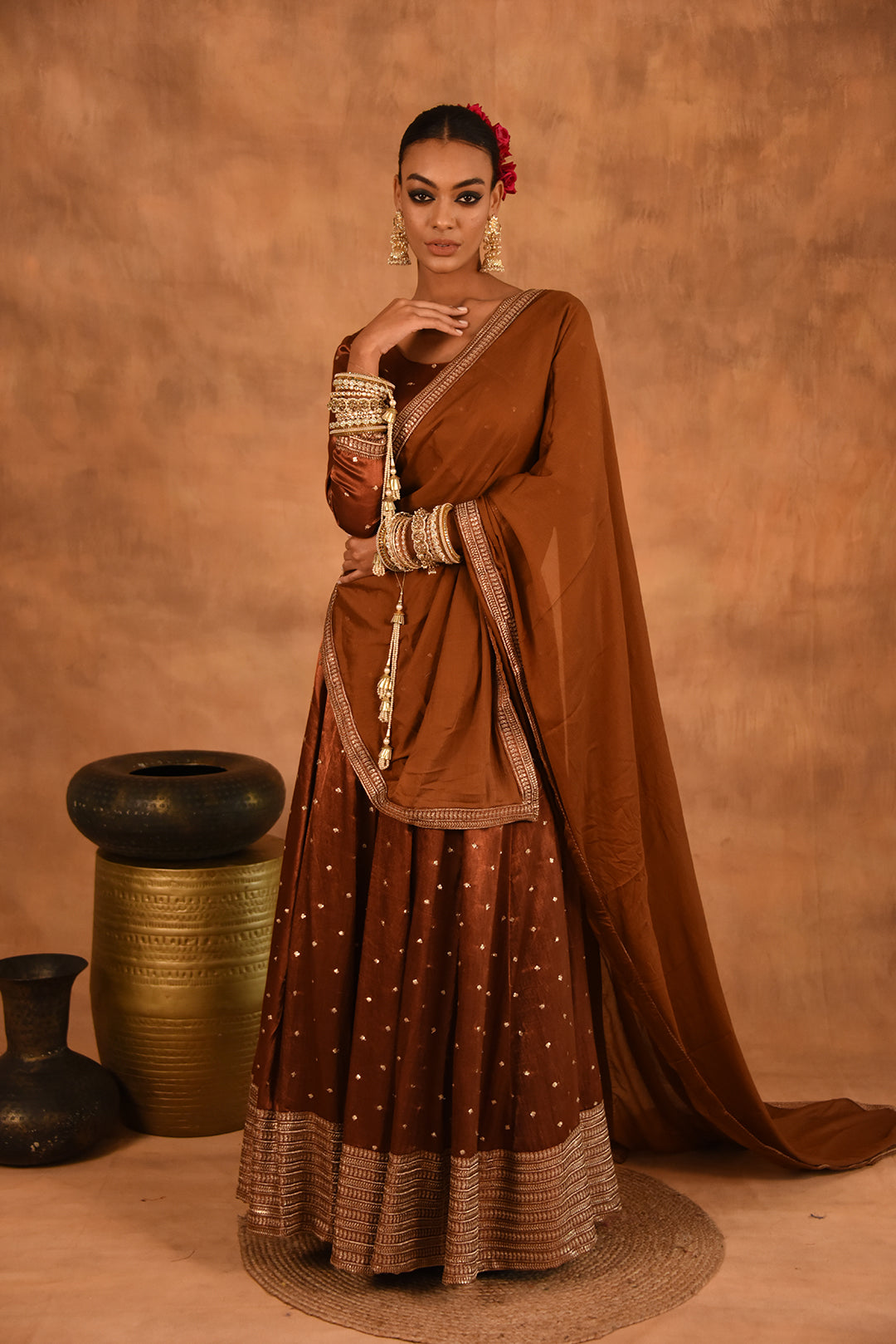 Brown Gajji Silk Lehenga Comes With Dupatta