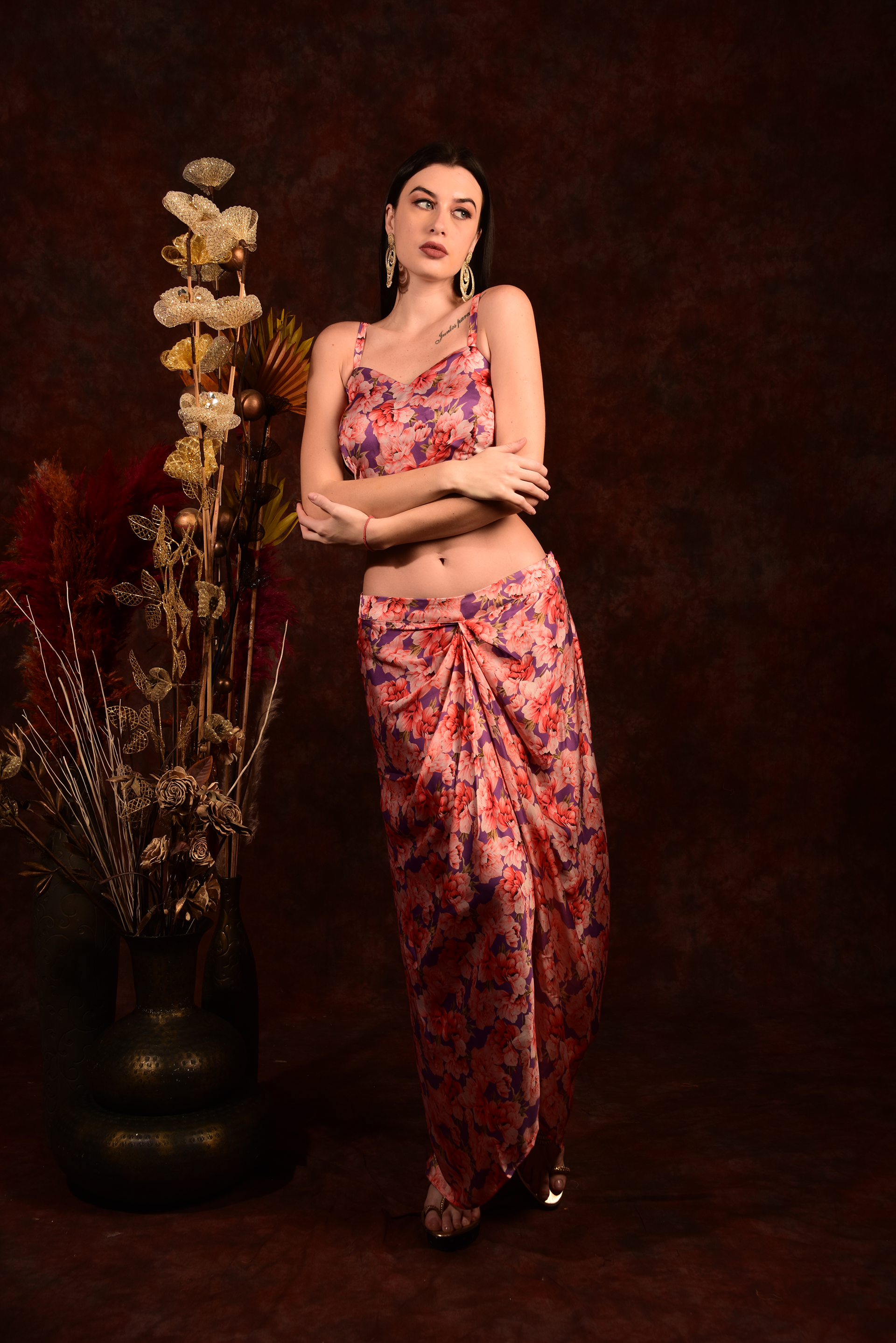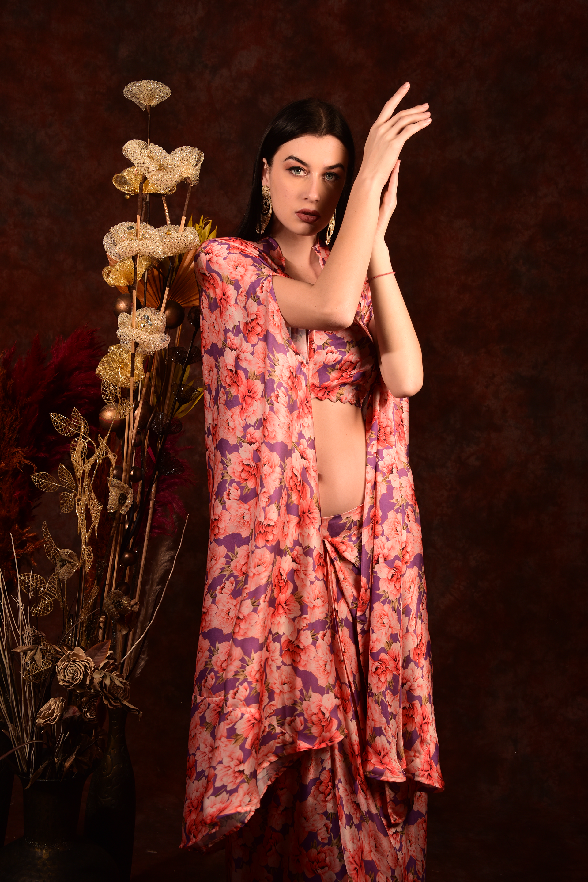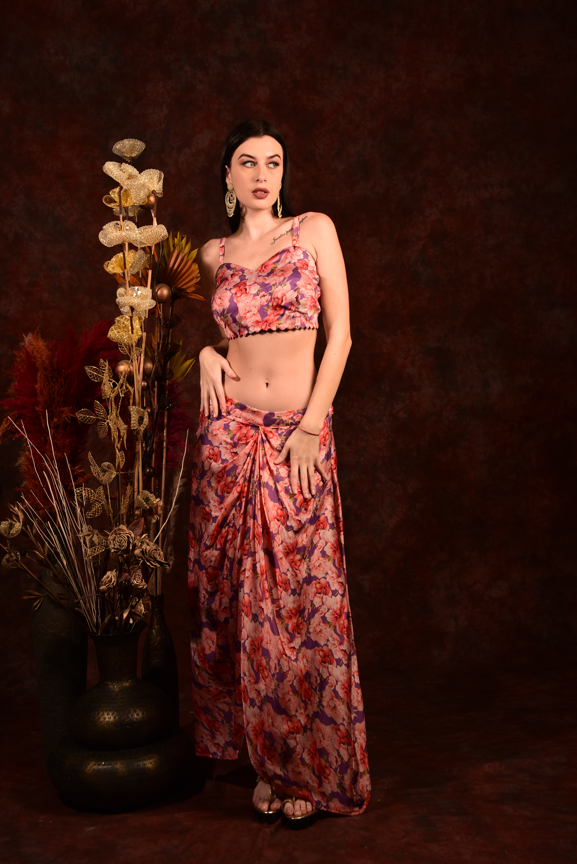 Get ready to turn heads with our Printed Crop top shrug and dhoti skirt set! The vibrant prints and comfortable fit make it perfect for any occasion. Add a touch of quirkiness to your wardrobe and make a statement. (This is the perfect outfit for those who like to stand out in style!)