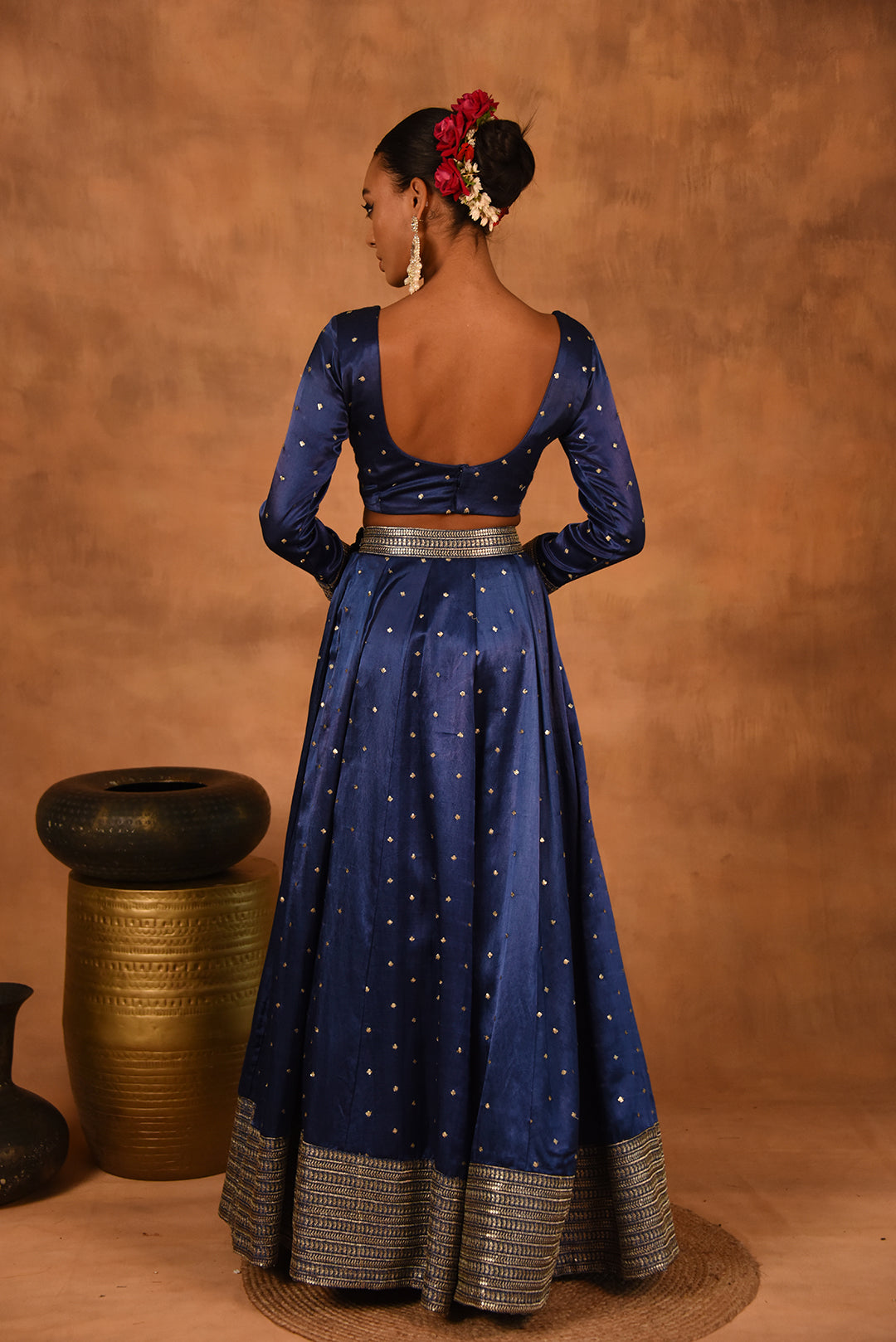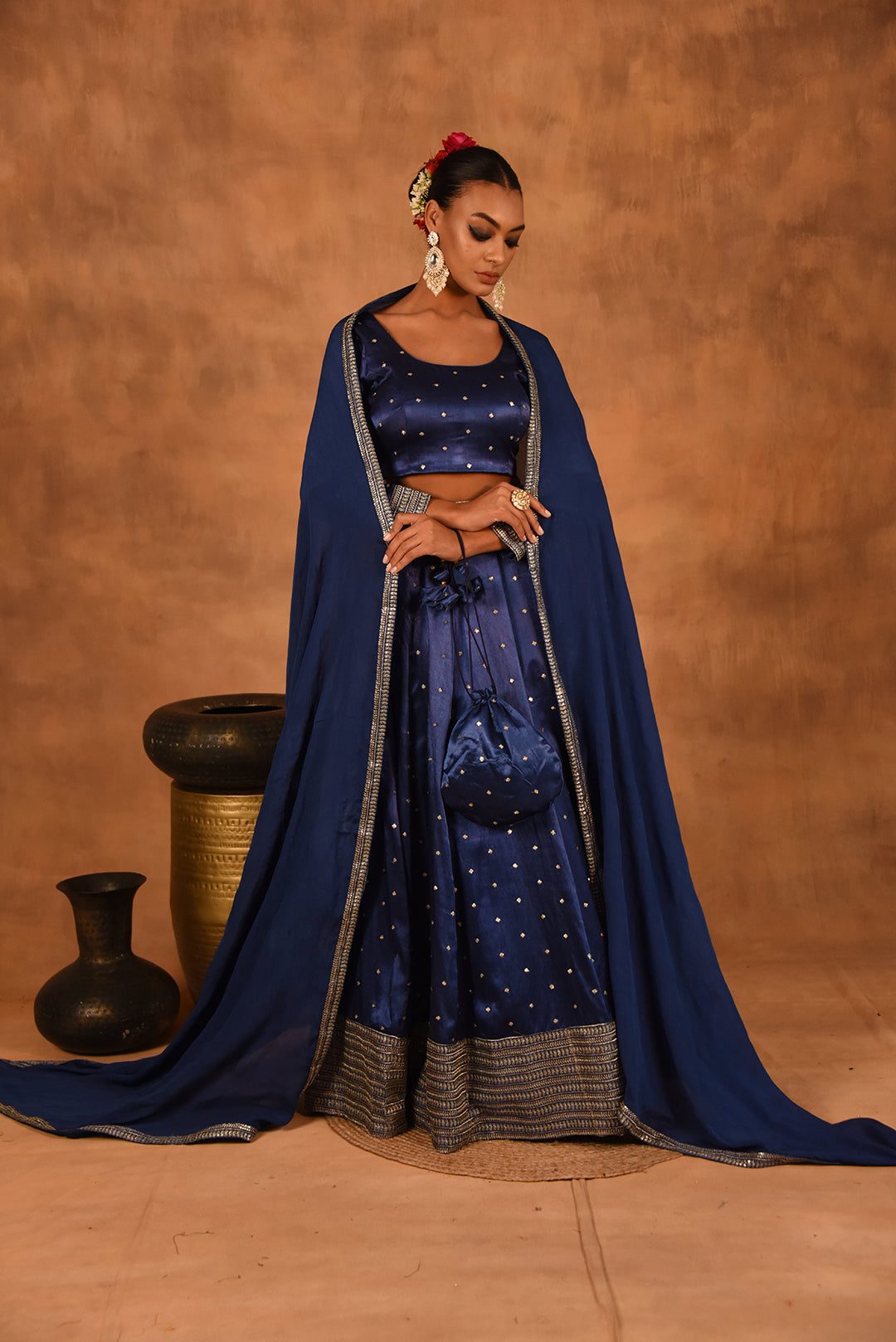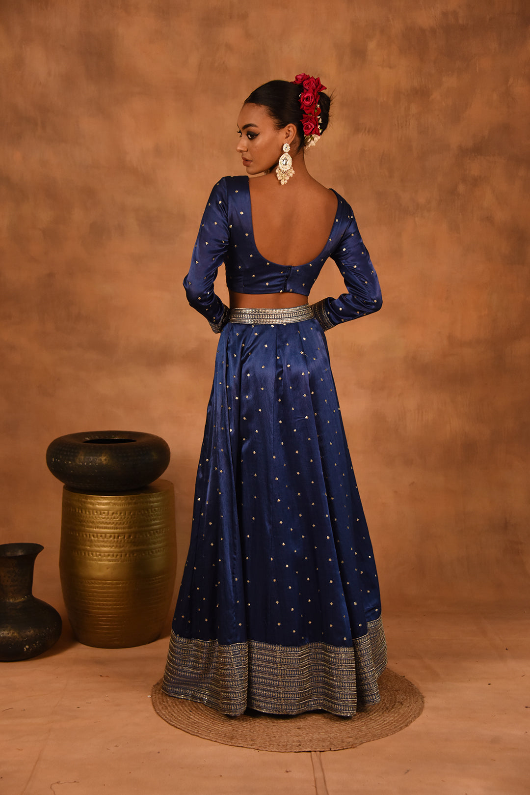 Expertly designed and crafted, this Royal Blue Gajji Silk Lehenga exudes elegance and grace. Made from high-quality Gajji silk, it offers a luxurious feel and a stunning appearance. Perfect for special occasions, this lehenga will make you stand out and feel confident.