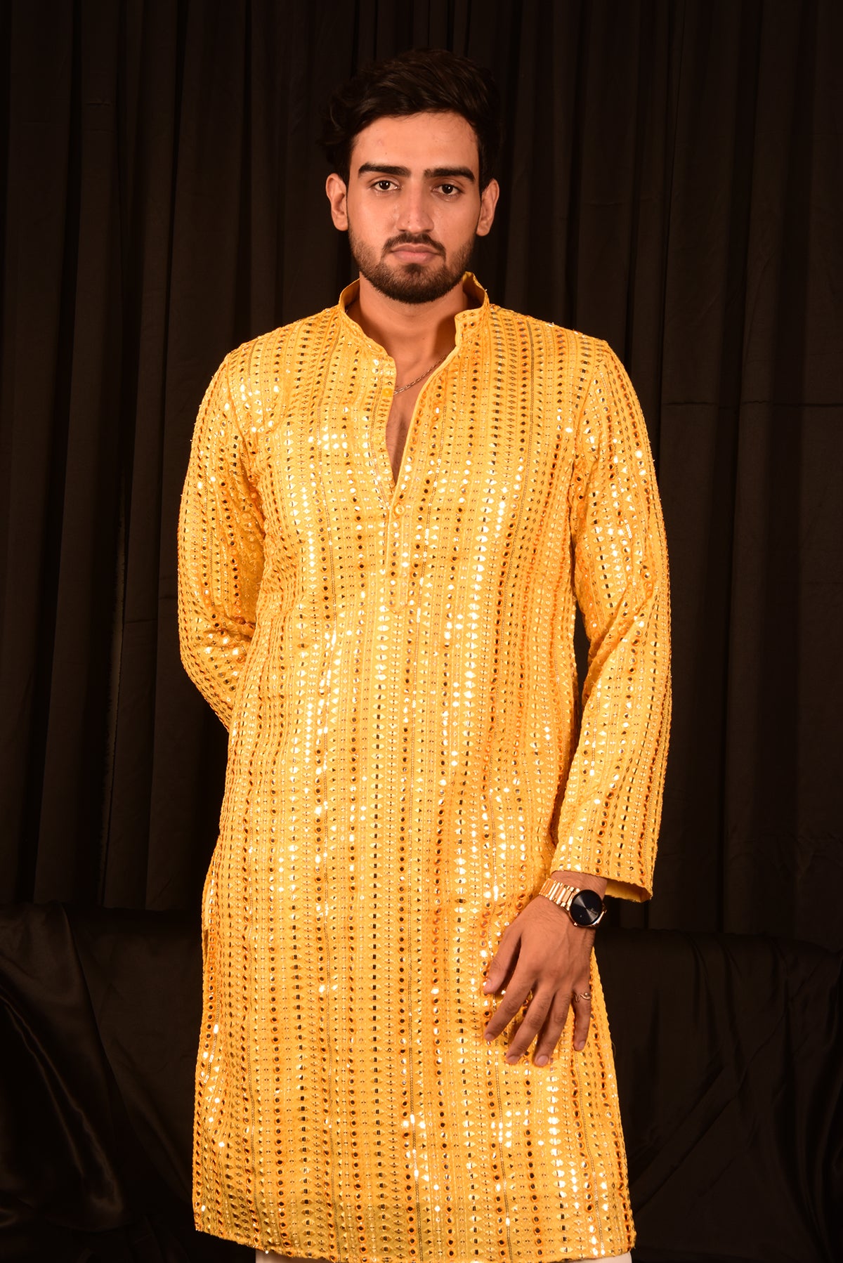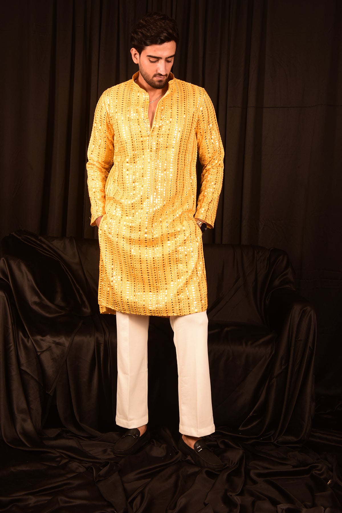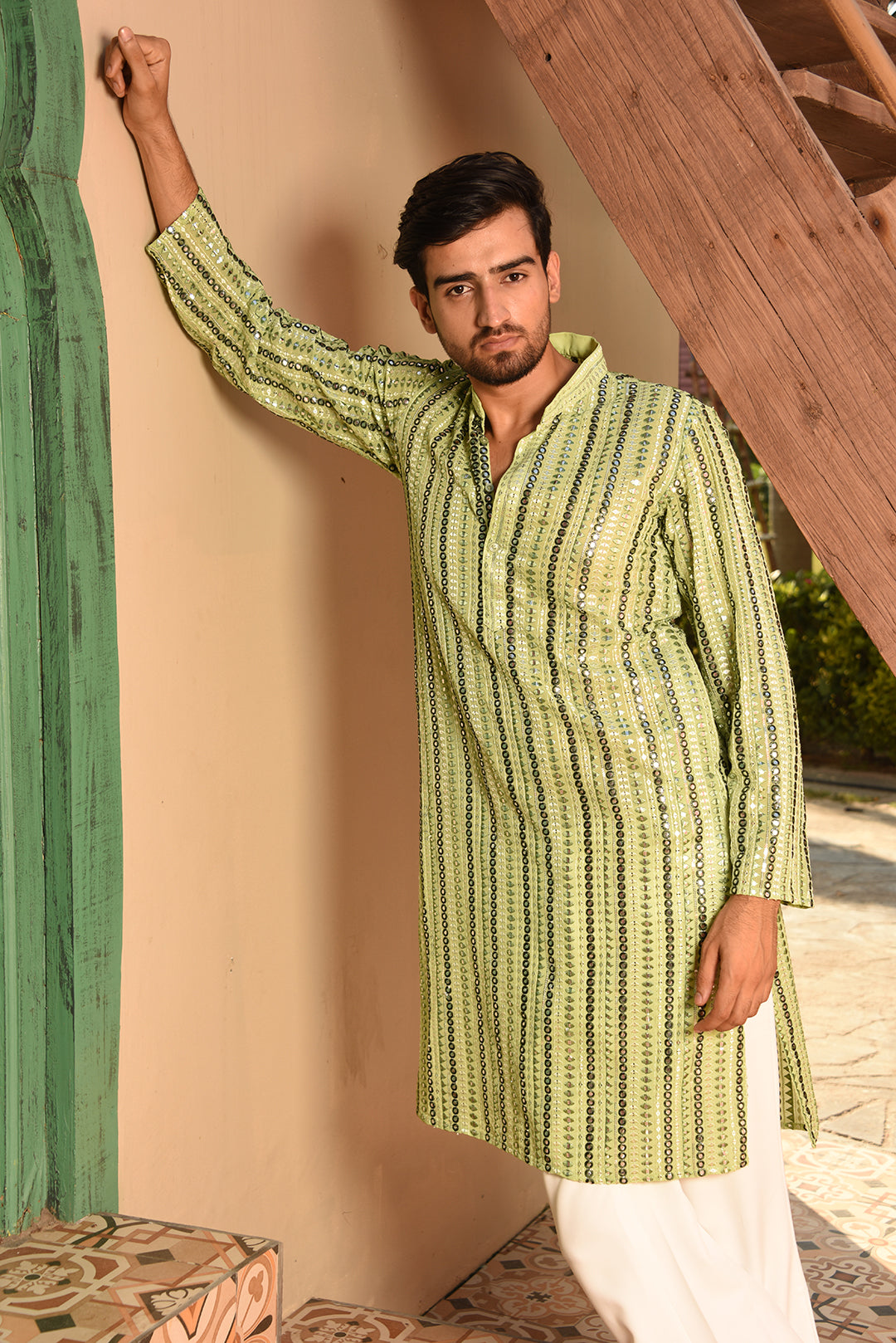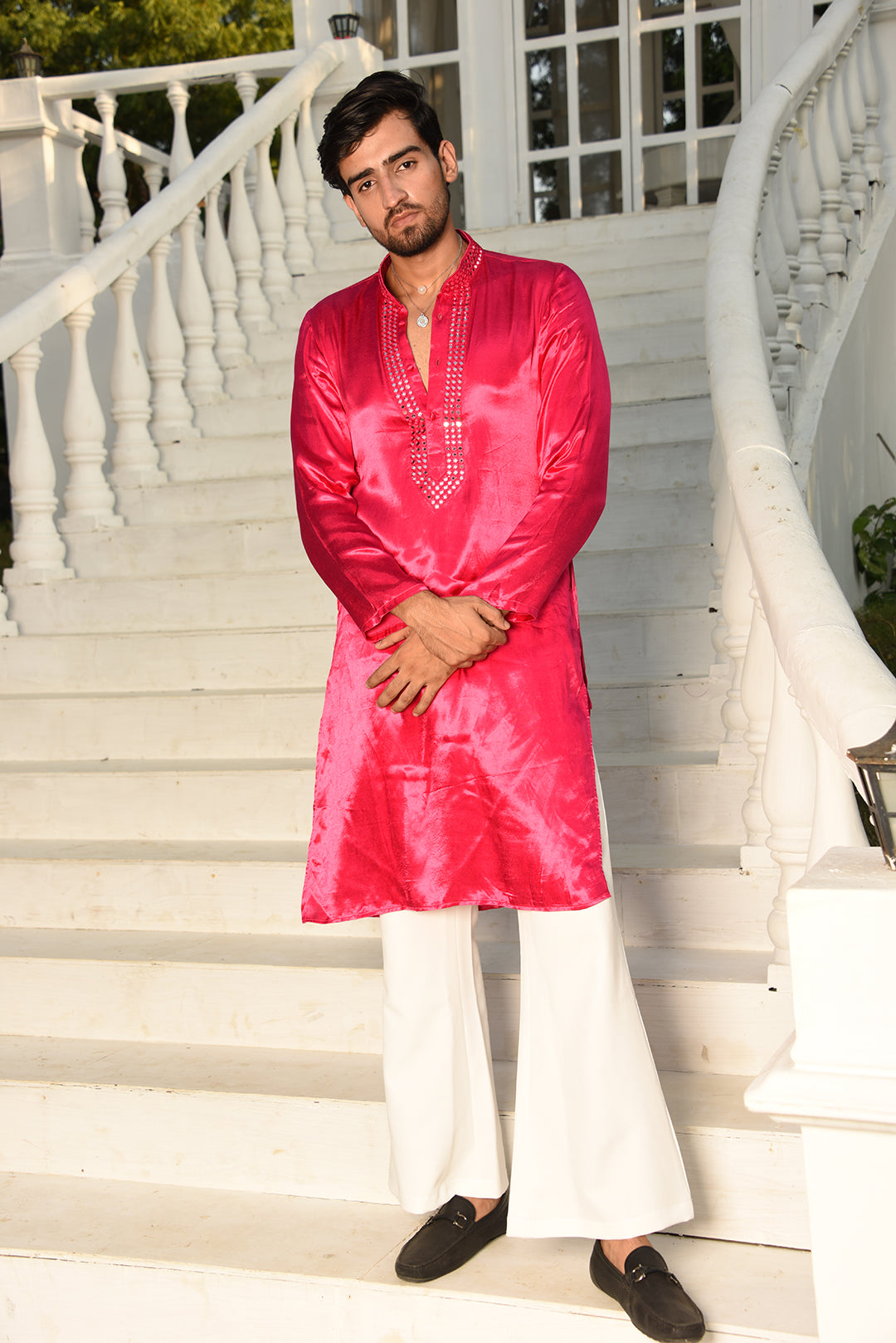 MIRROR EMBROIDERED LONG KURTA WITH PANTS