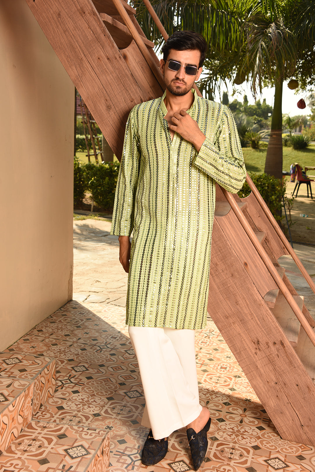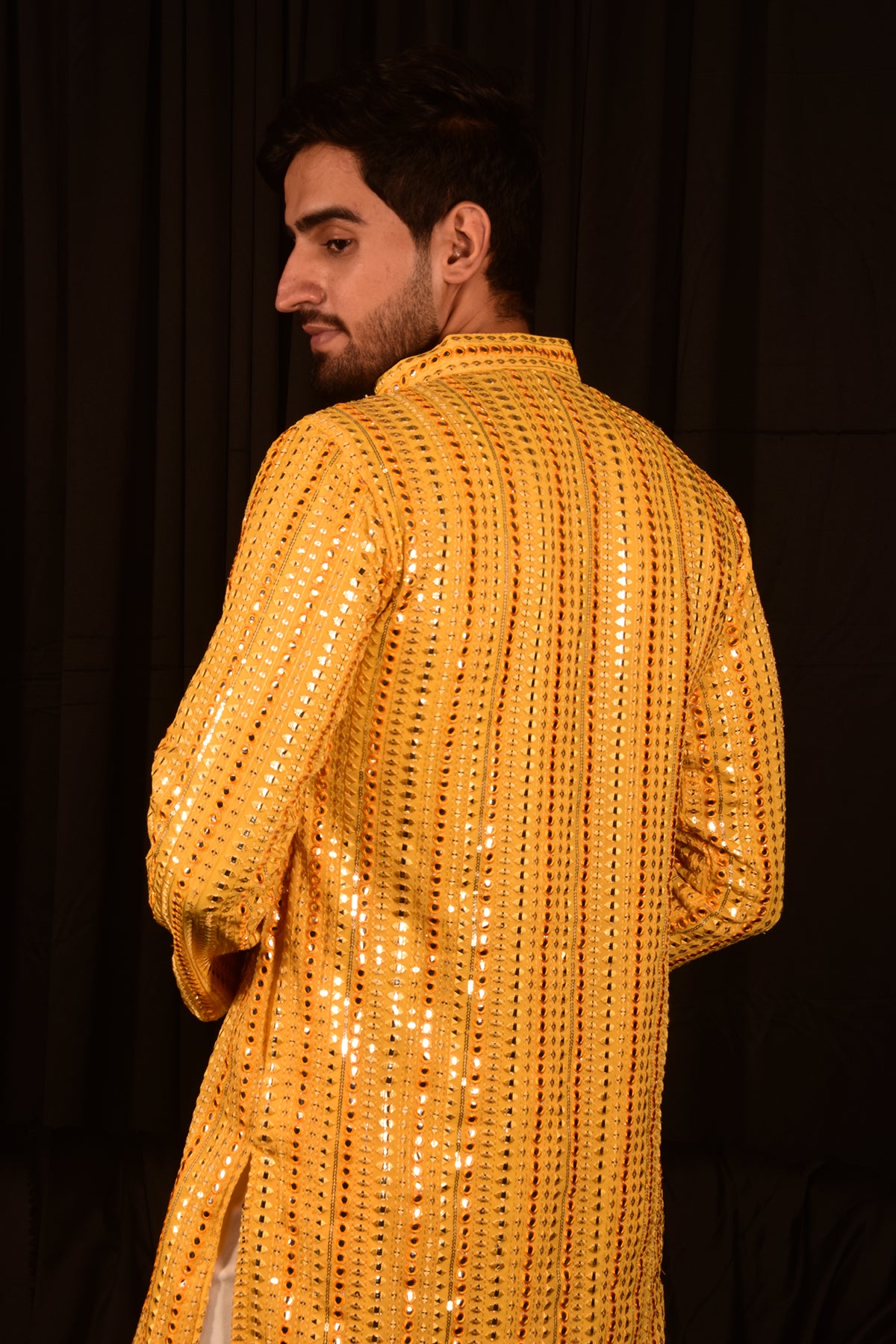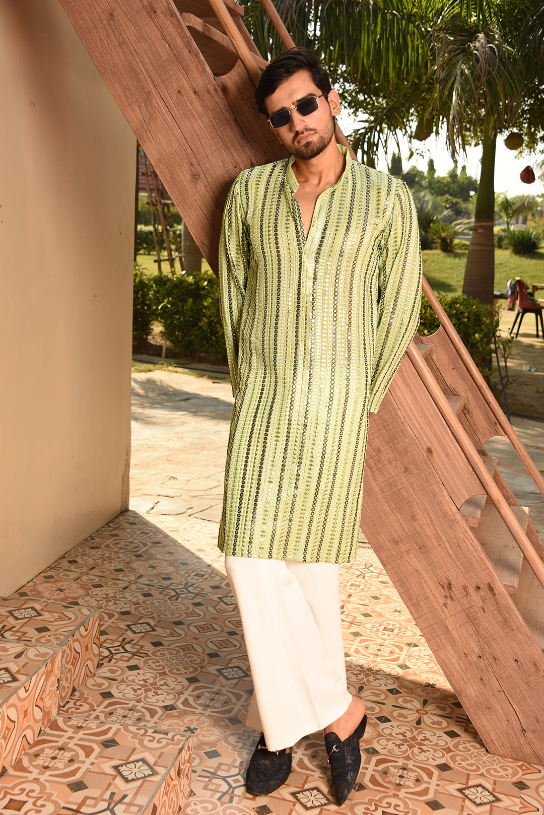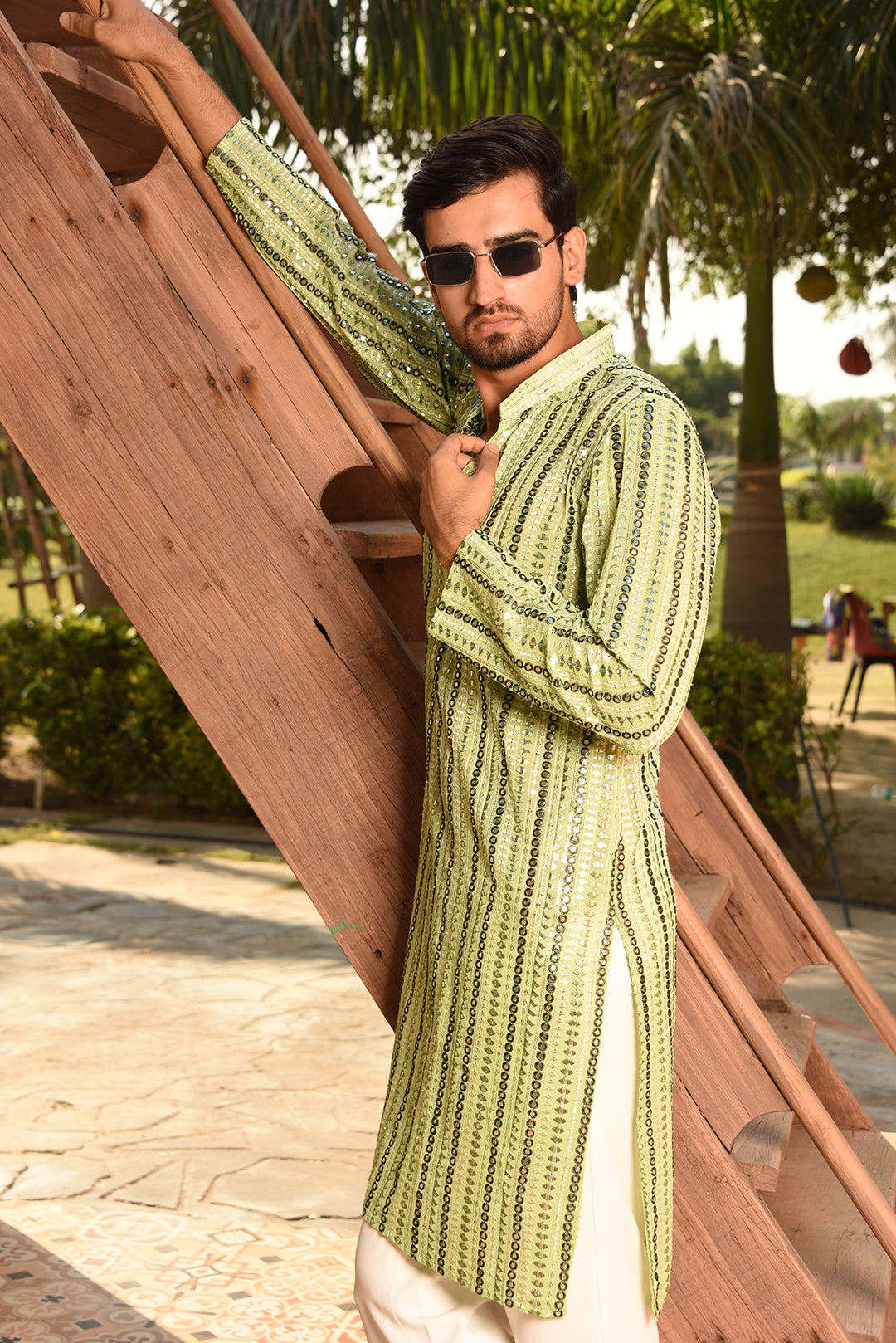 MIRROR EMBROIDERED LONG KURTA WITH PANTS