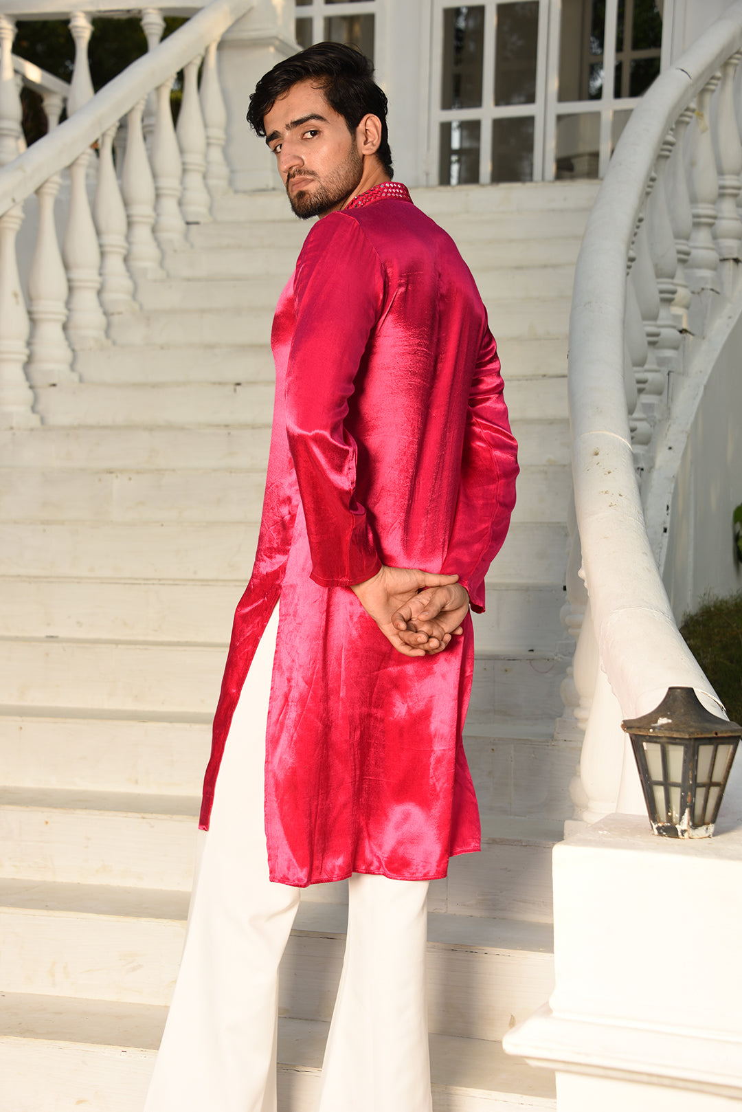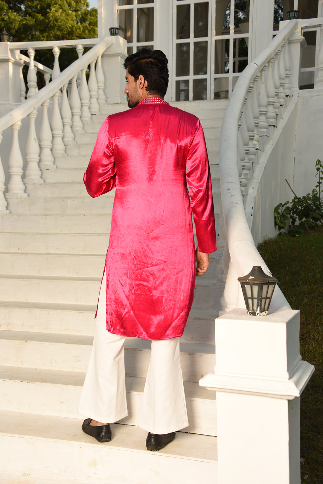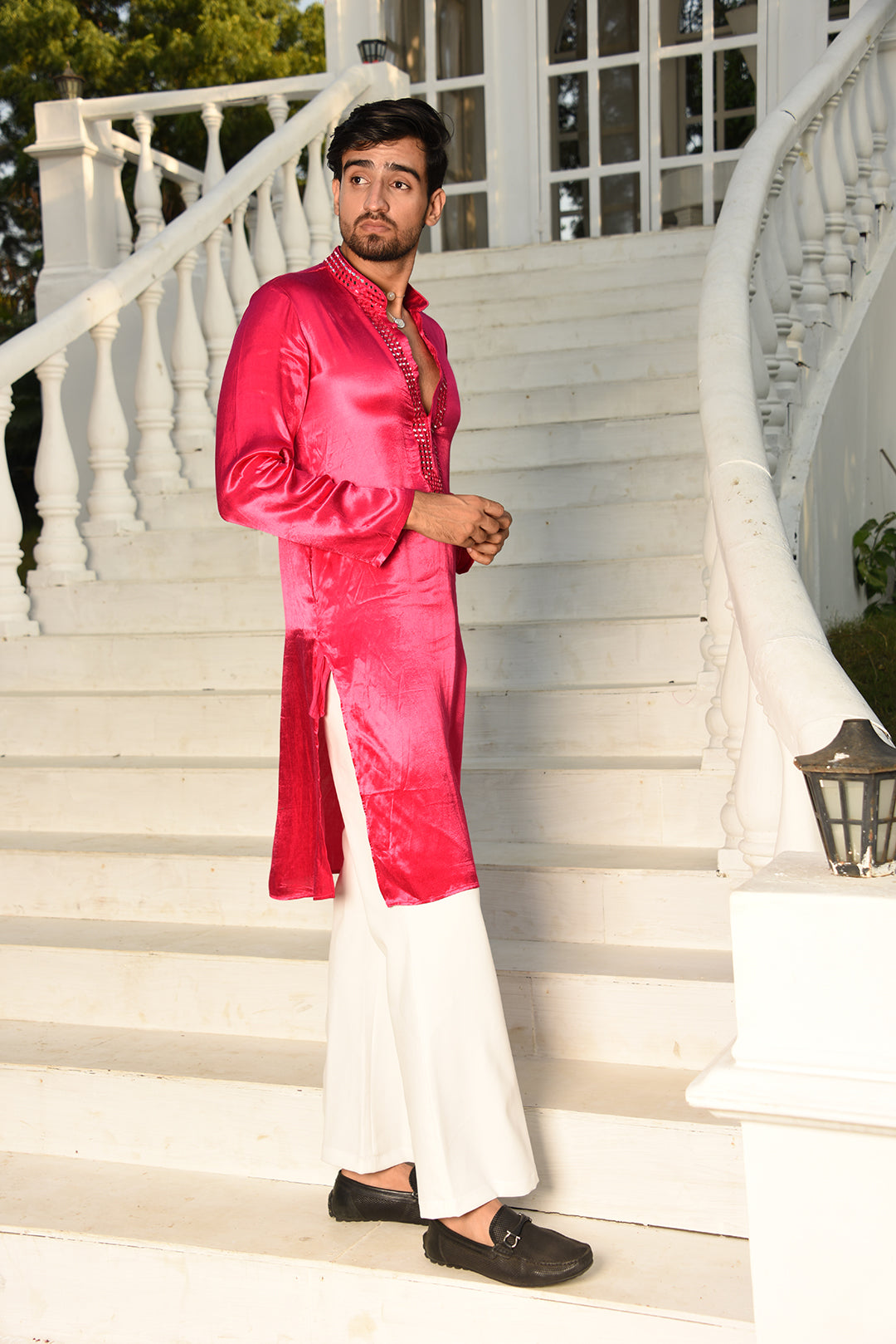 PURE GAJJI SILK MAJENTA PINK STRAIGHT KURTA SET