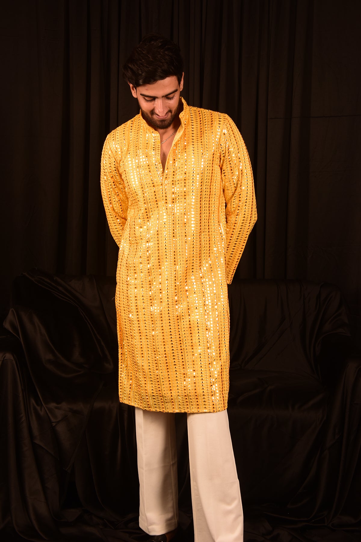 YELLOW STRAIGHT KURTA SET WITH PANTS