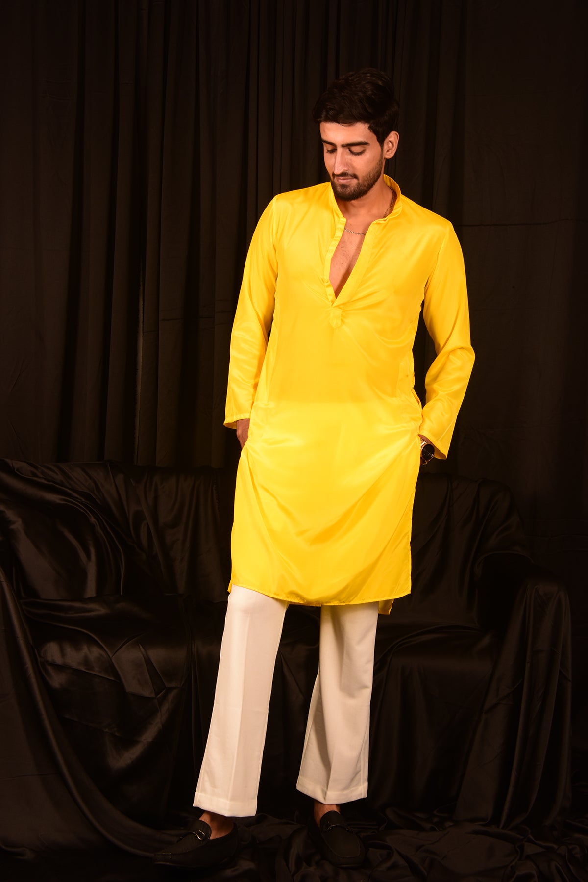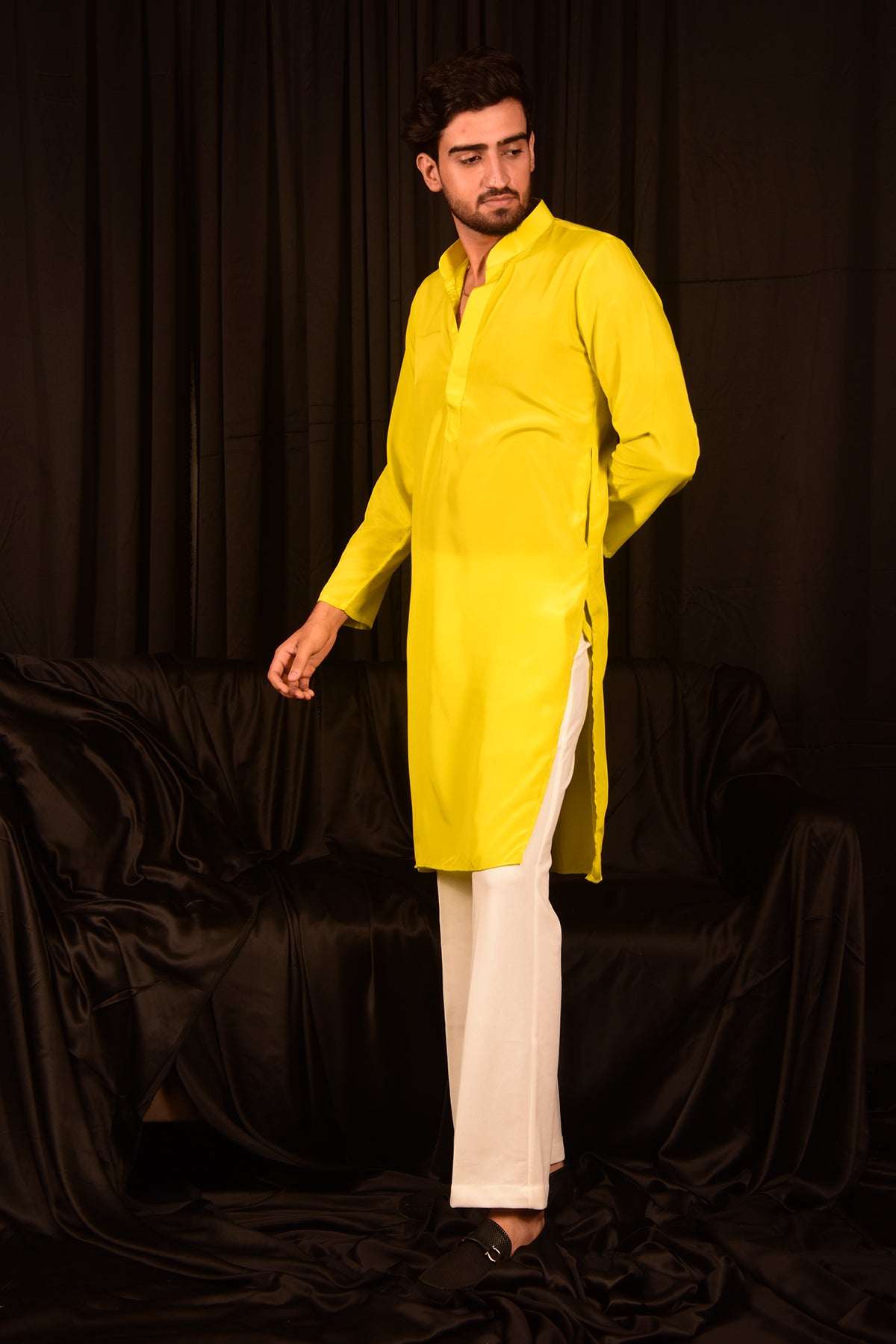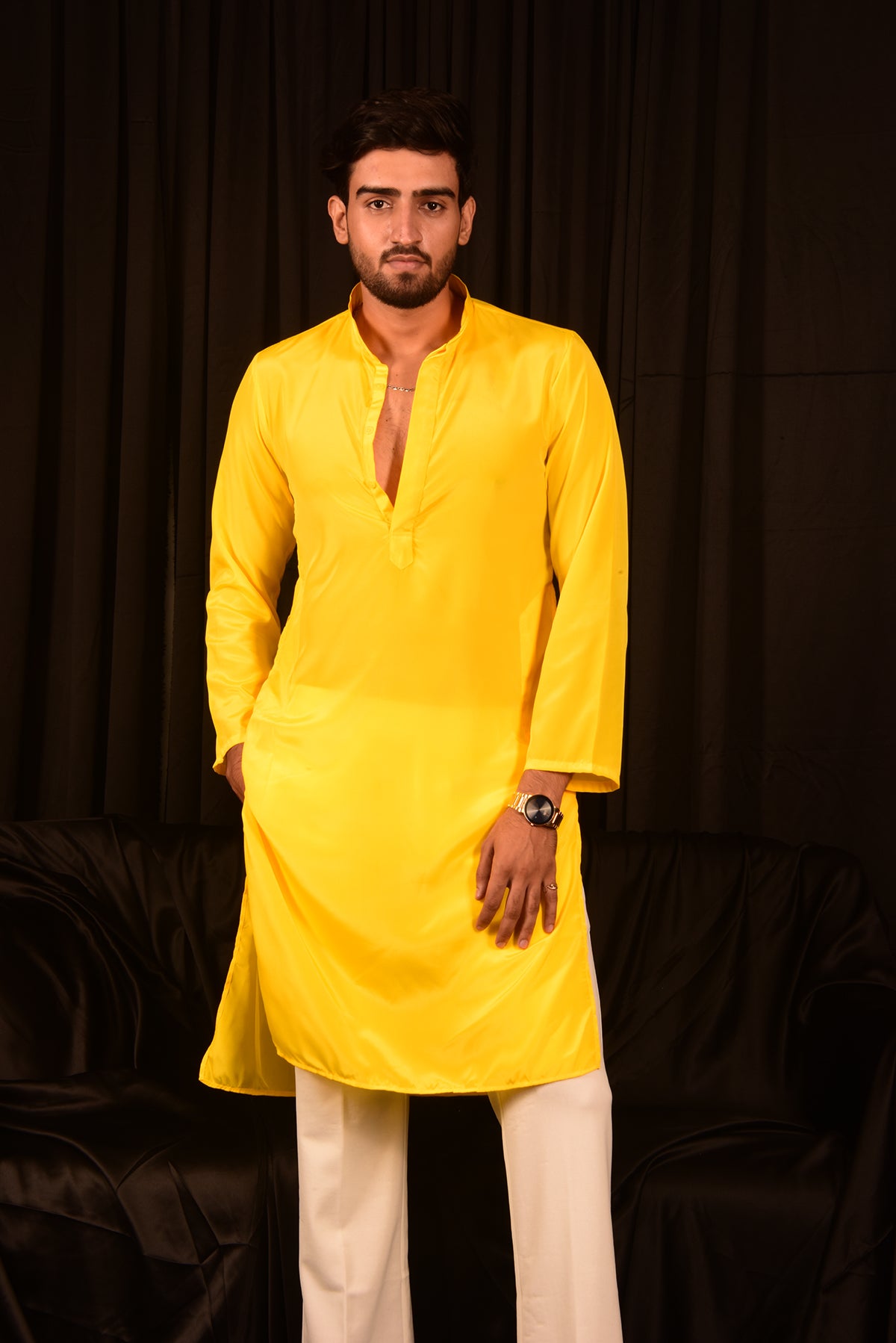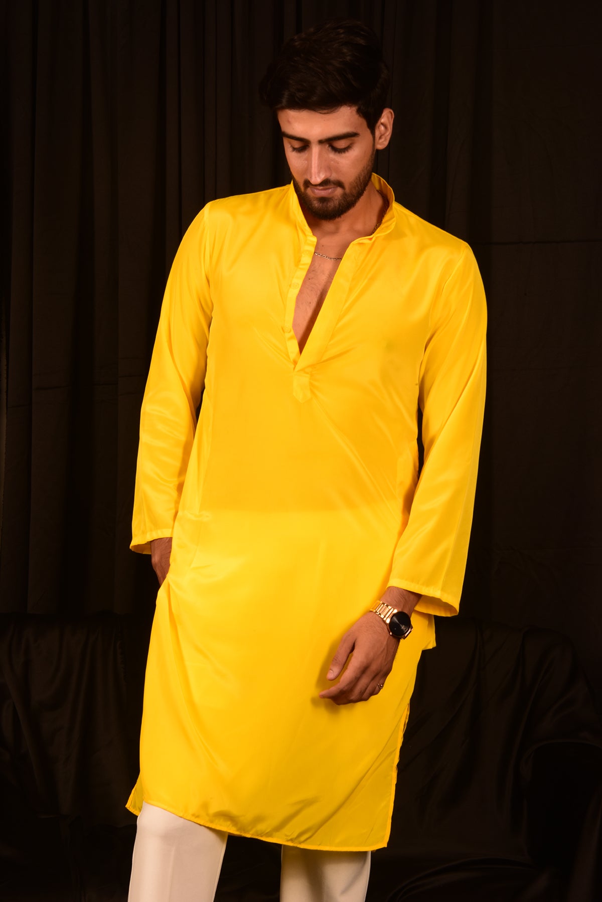 STRAIGHT YELLOW SOLID CHINON KURTA SET