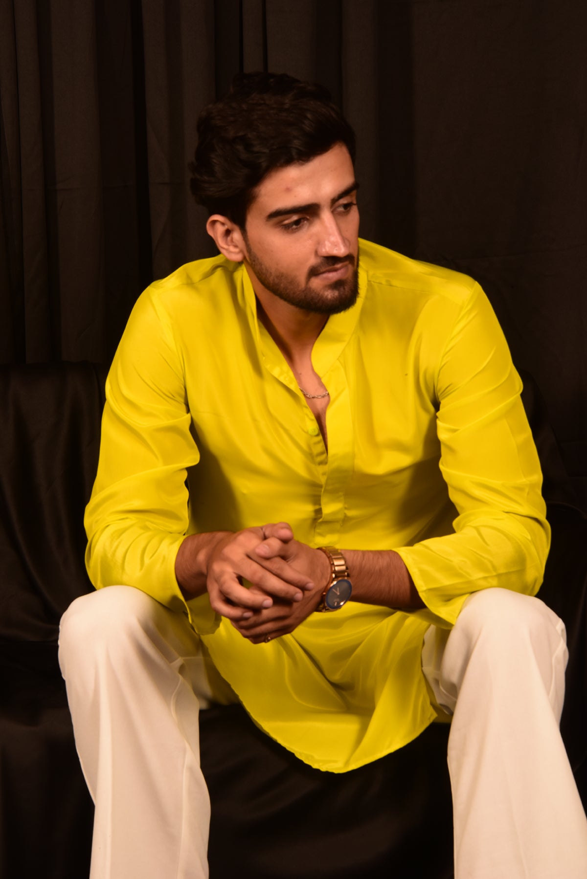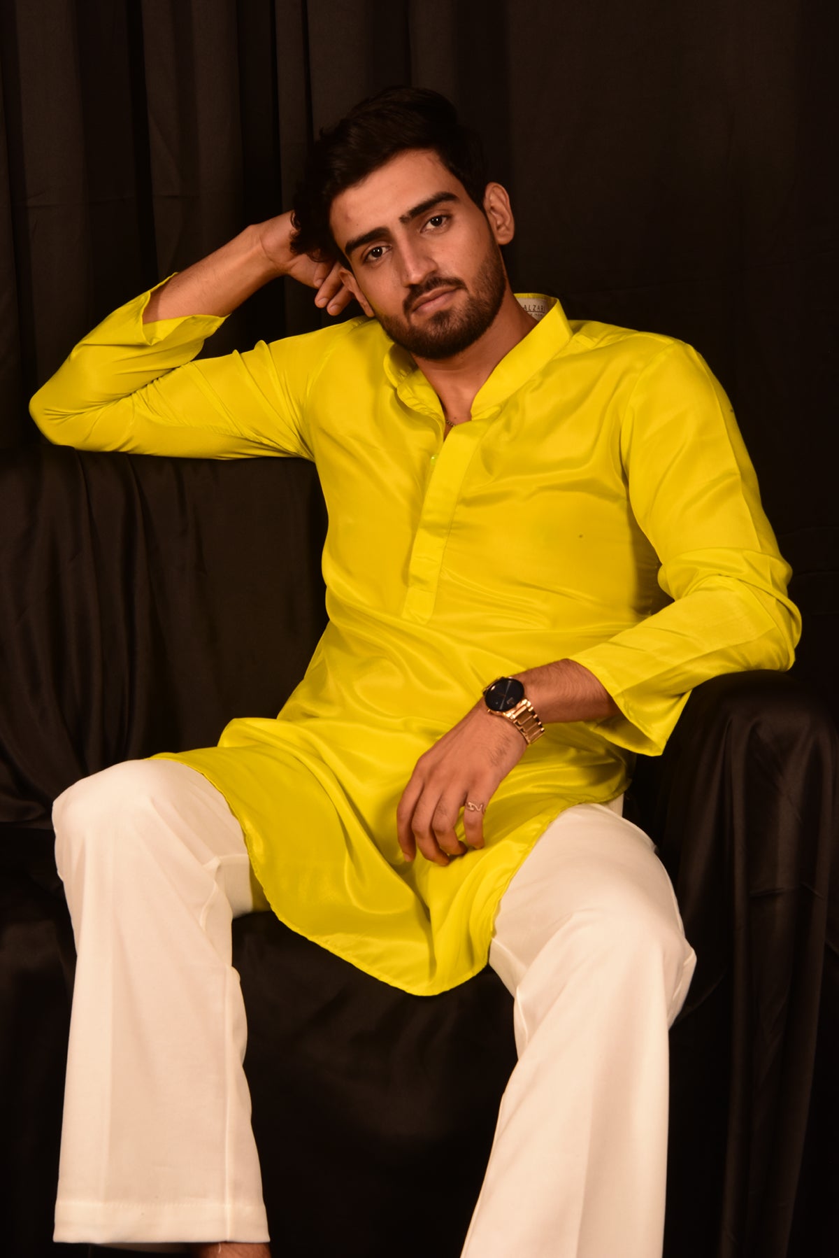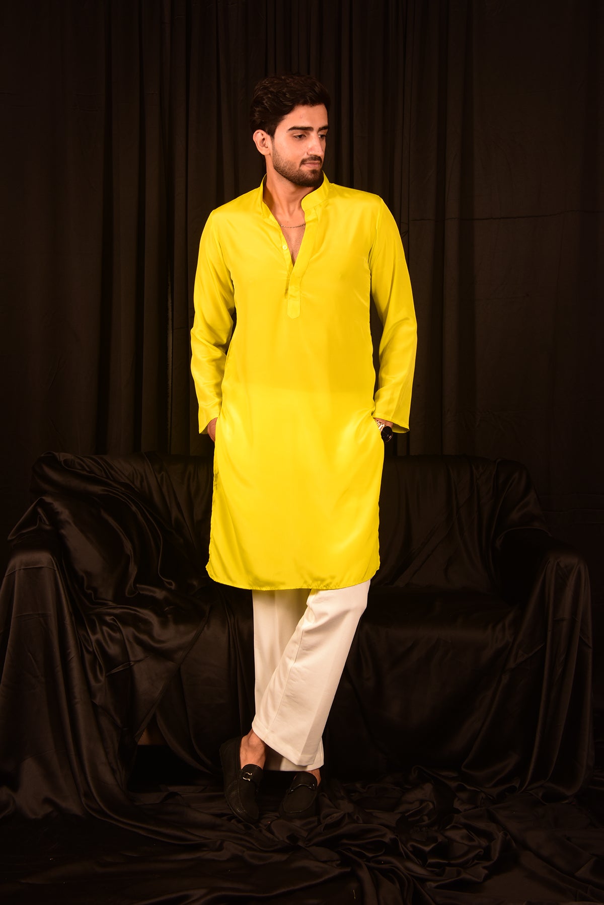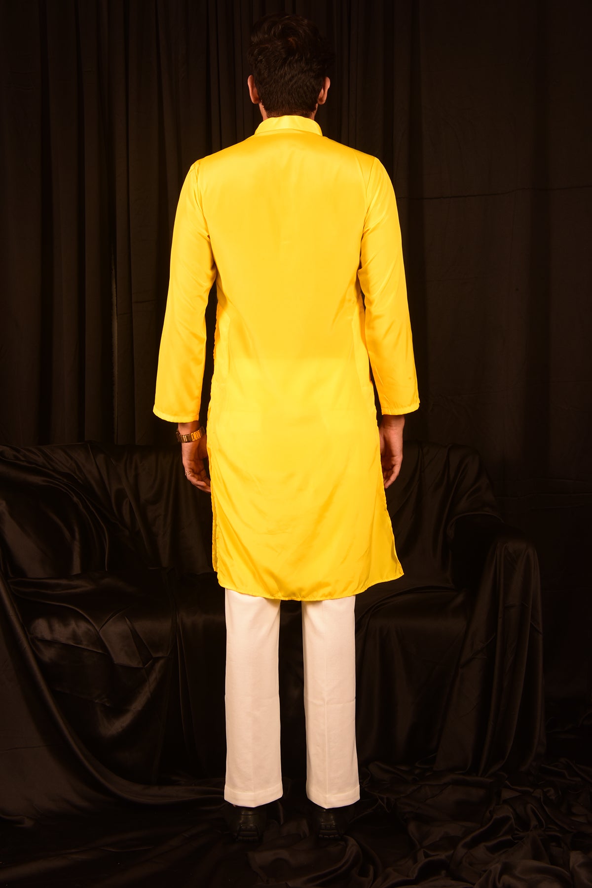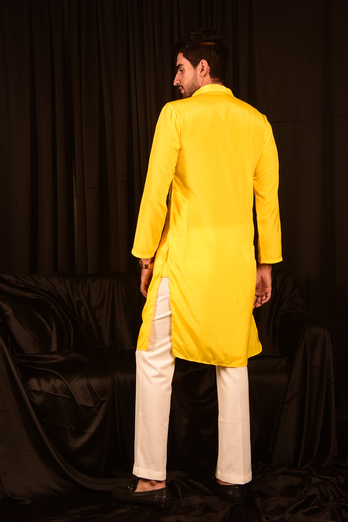 STRAIGHT YELLOW SOLID CHINON KURTA SET