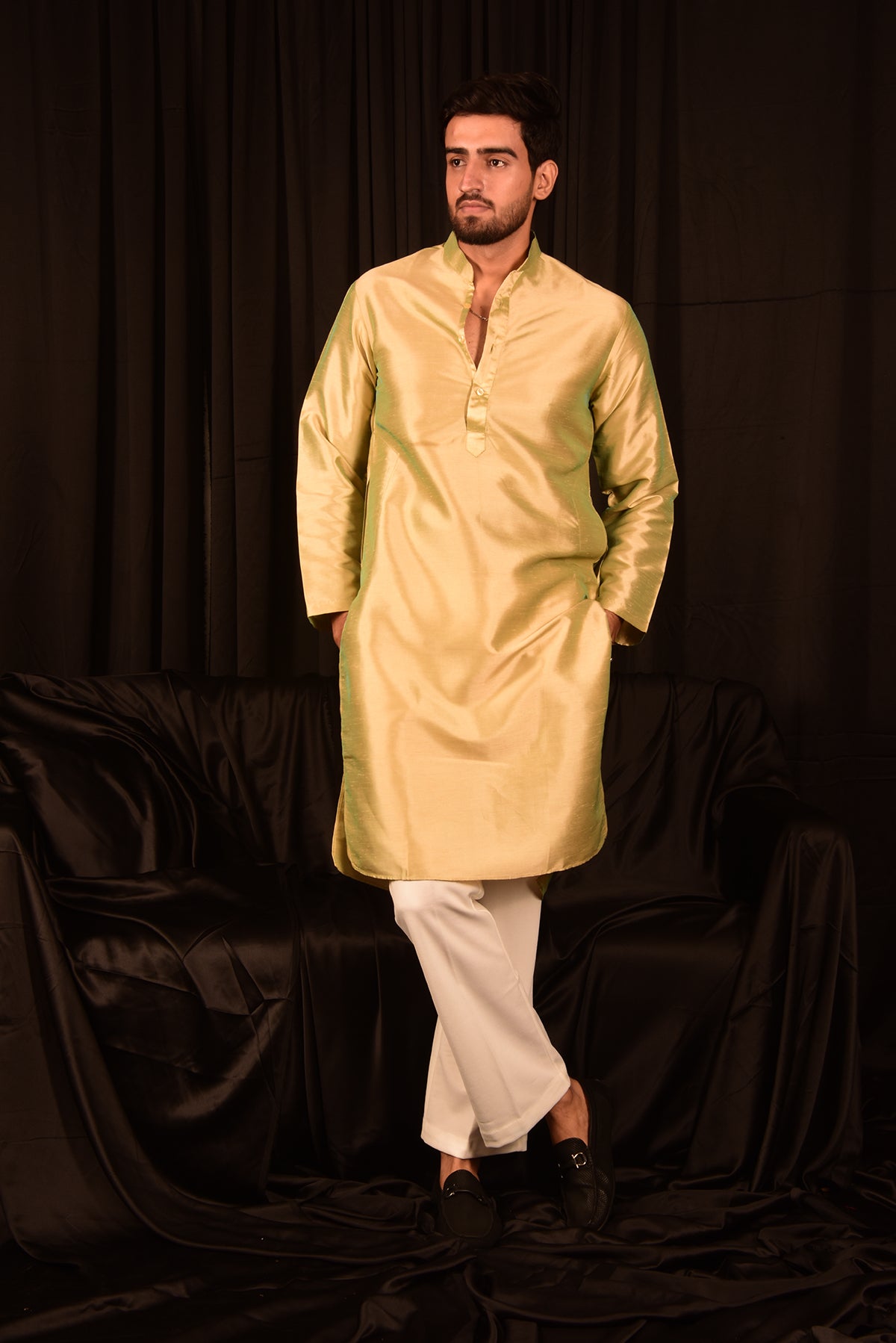 PURE GAJJI SILK STRAIGHT KURTA WITH PANTS