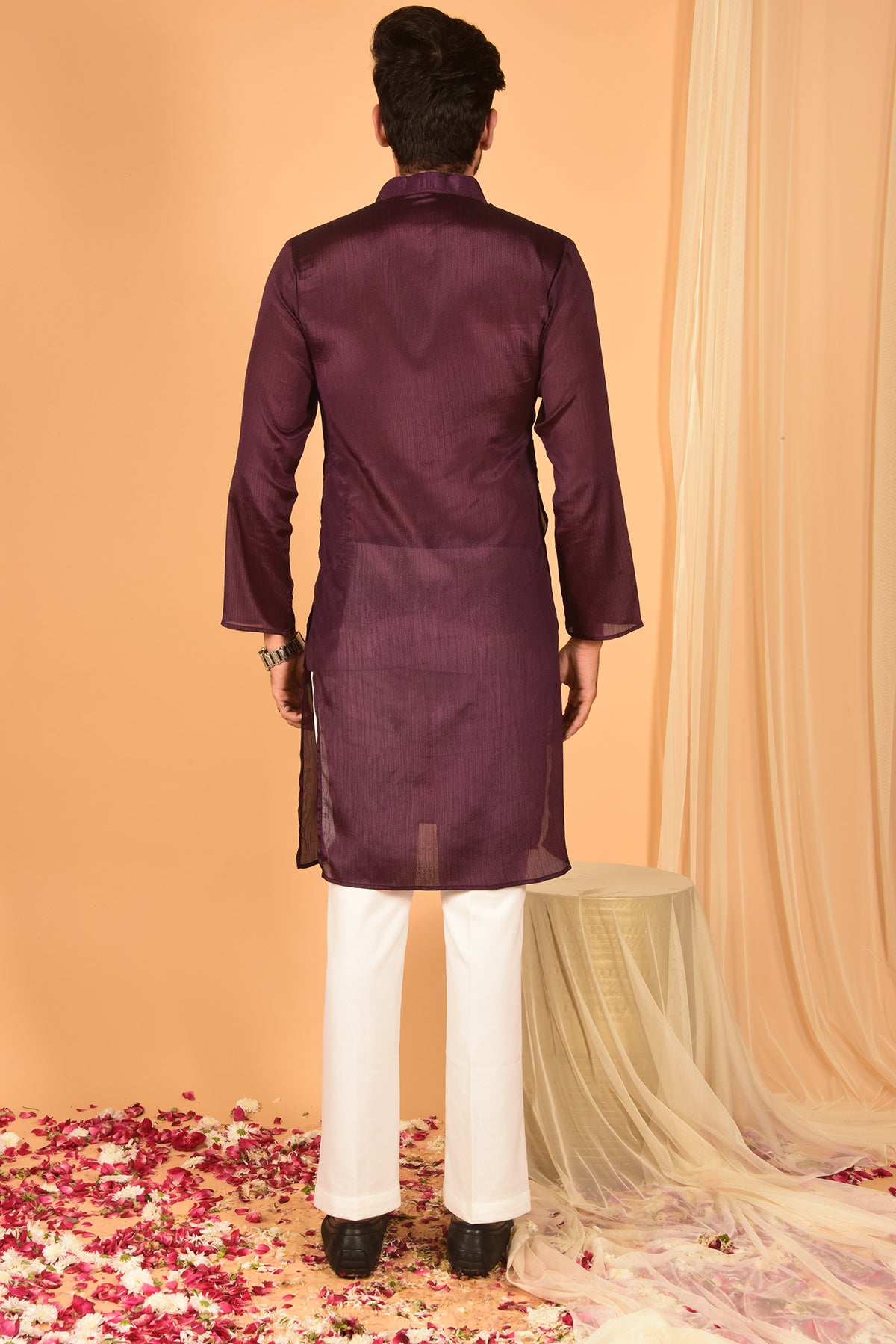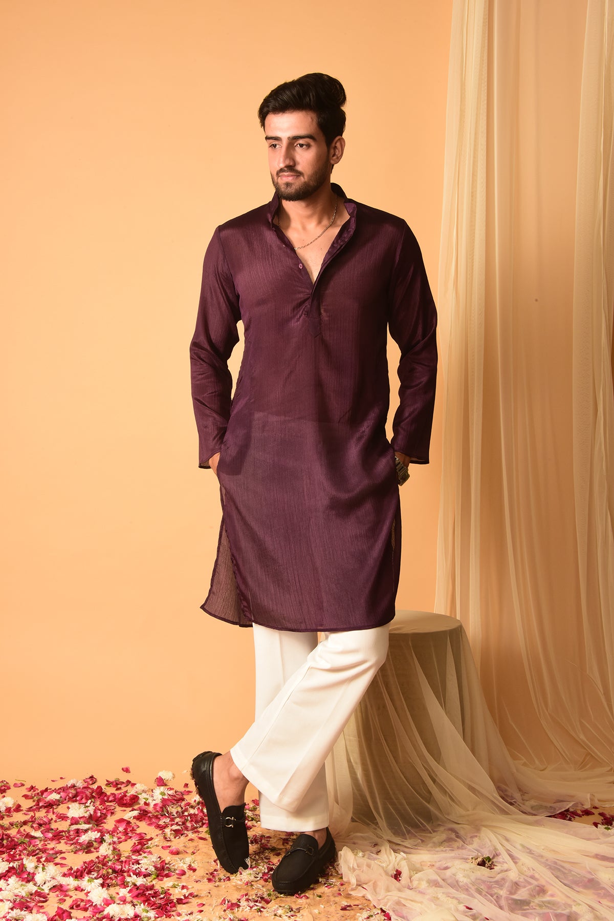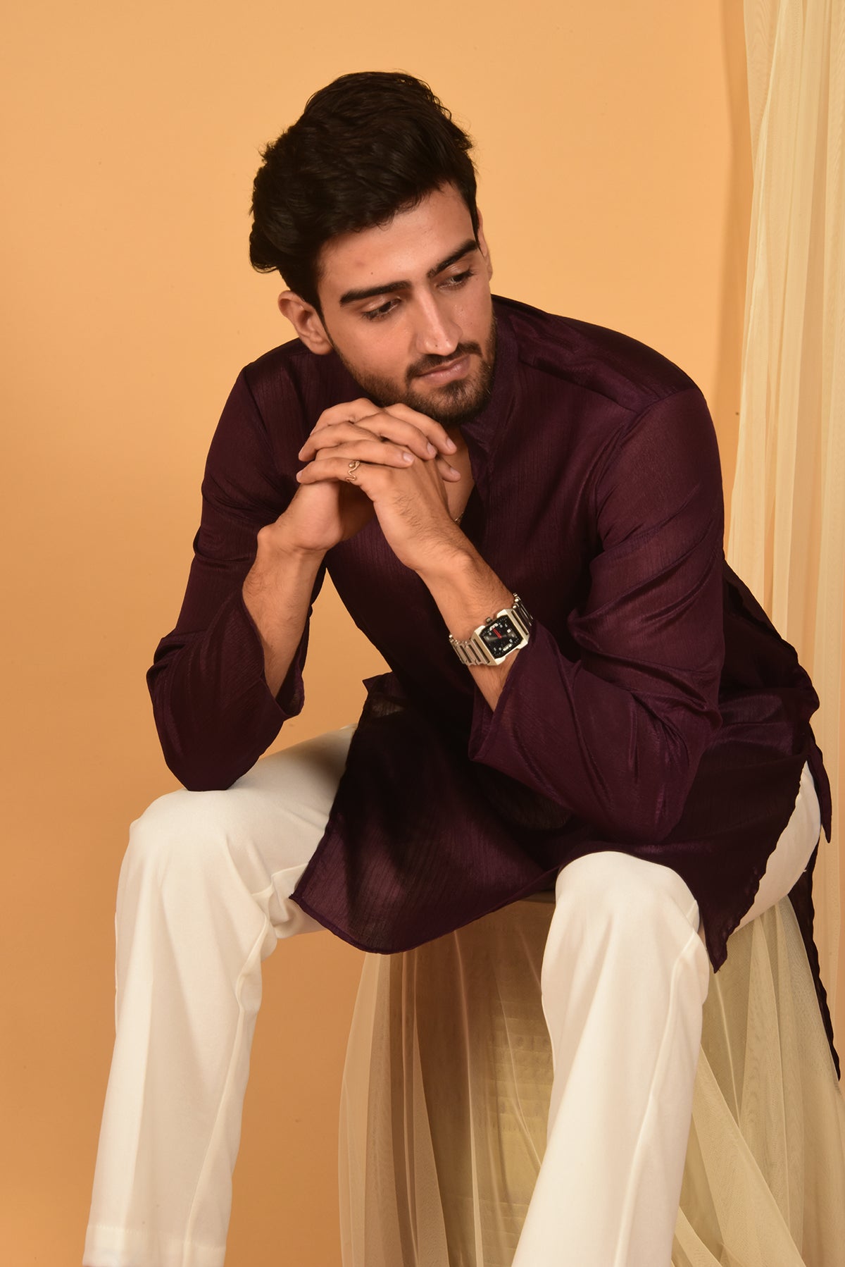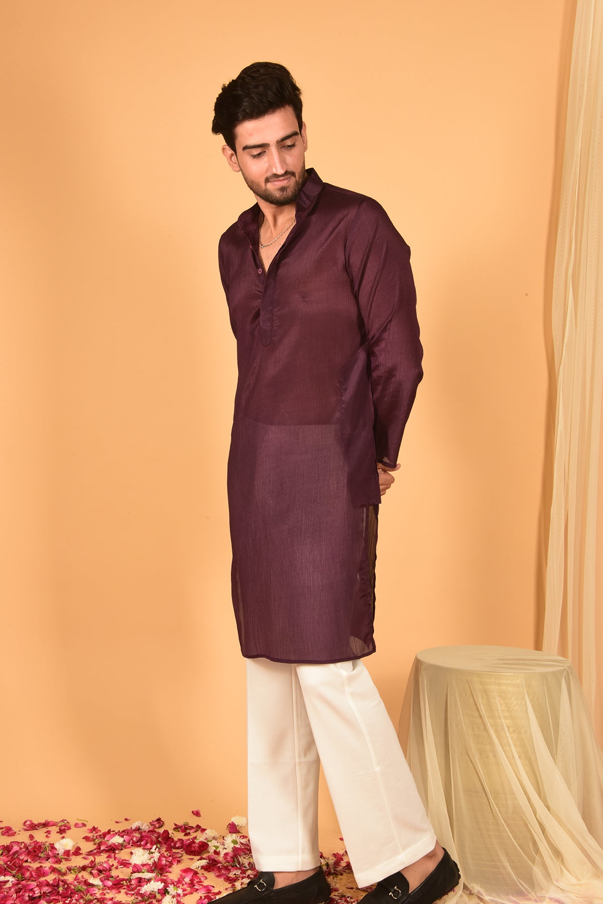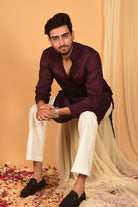 Step up your desi game with our Brown Chinon Kurta set, complete with stylish white pants. Perfect for any occasion, this set is a must-have for those looking to add a touch of sophistication to their wardrobe. With its chic color combo and comfortable fit, you'll be turning heads wherever you go. Get yours now!