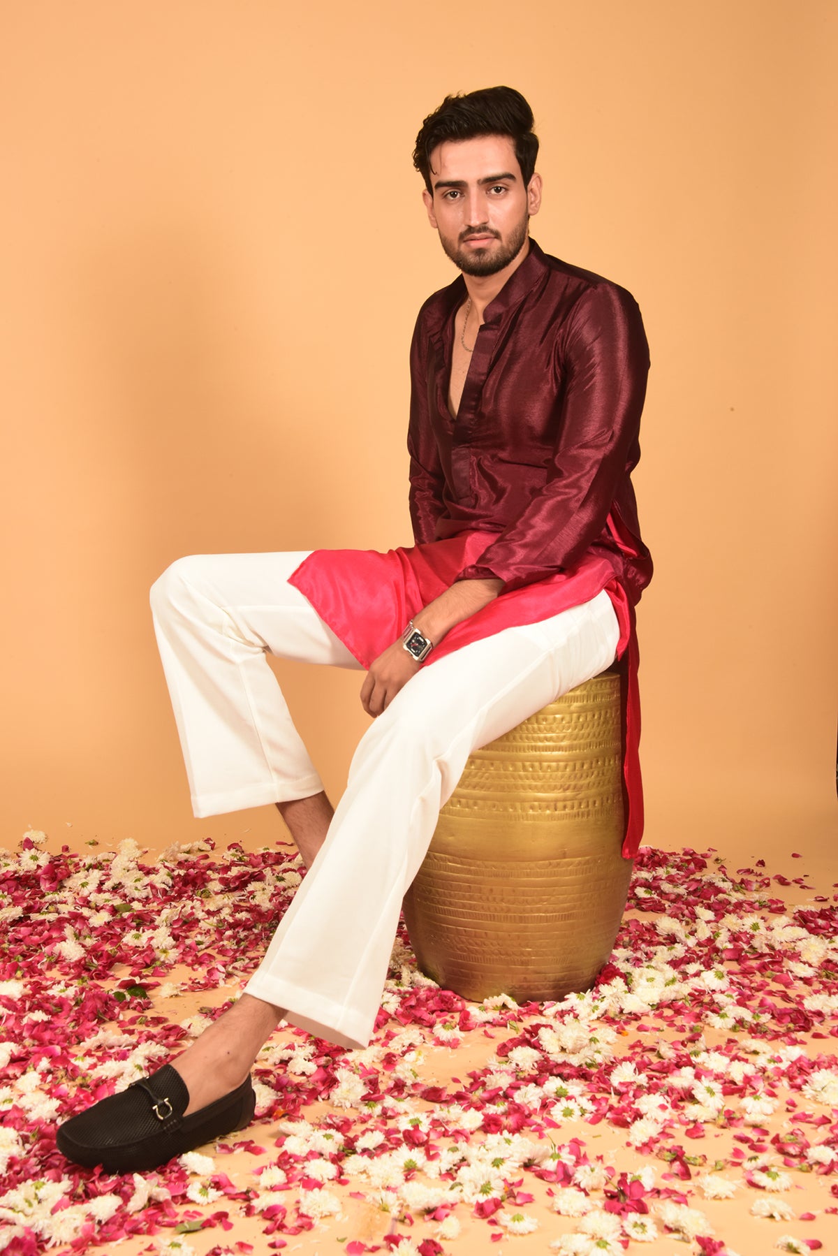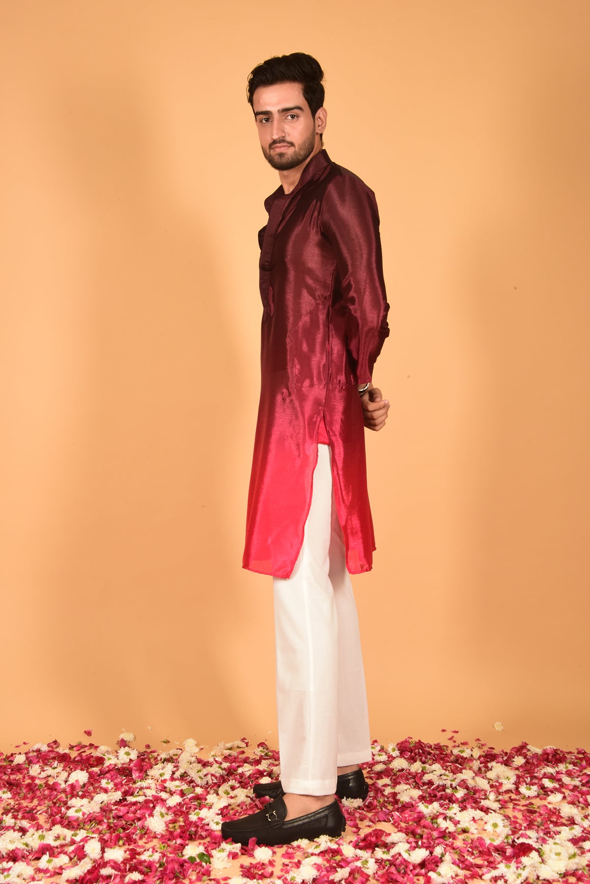 Experience chic elegance with our DARK MAROON CHINON OMBRE KURTA SET. Made with high-quality chinon fabric, this kurta set features a unique ombre design that elevates any outfit. Perfect for any occasion, this set offers comfort and style in one. Upgrade your wardrobe with this one-of-a-kind piece.