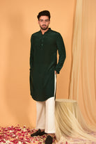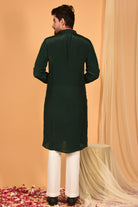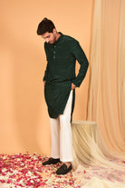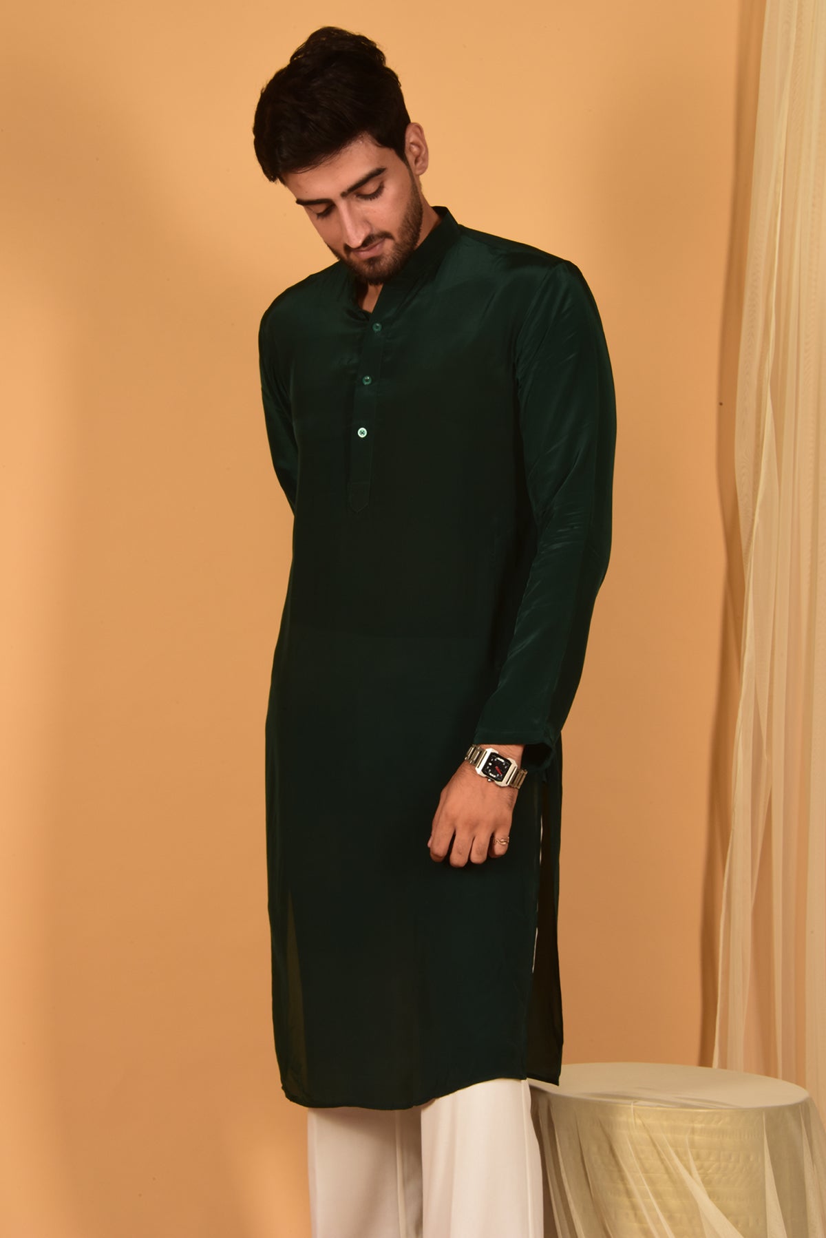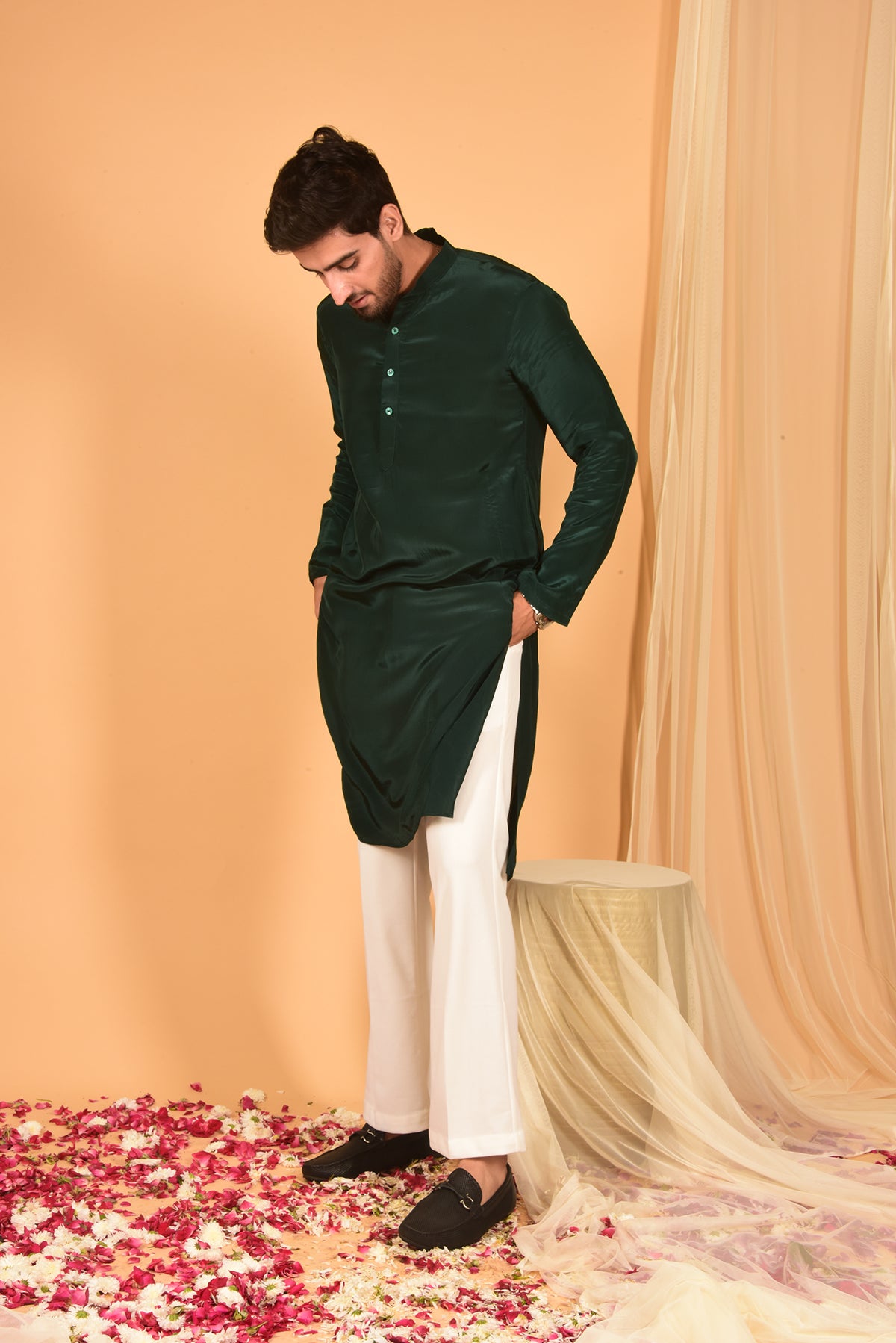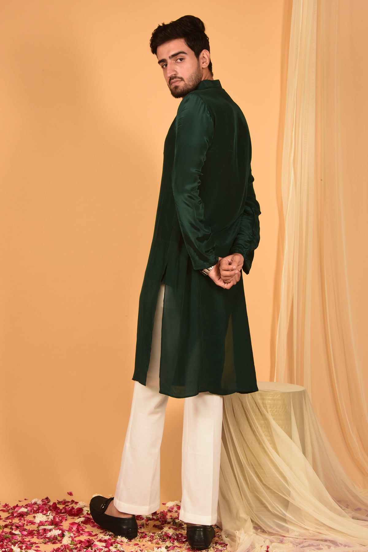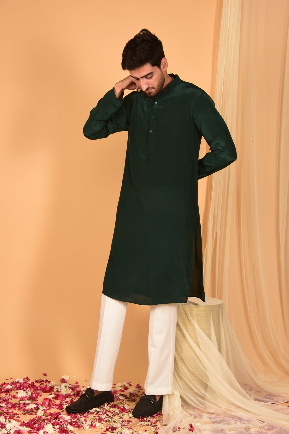 Unleash your wild side with this forest green kurta set! Perfect for any occasion, this set features a vibrant shade of green and comfortable pants to match. Let your style stand out with this unique and playful twist on a classic kurta.