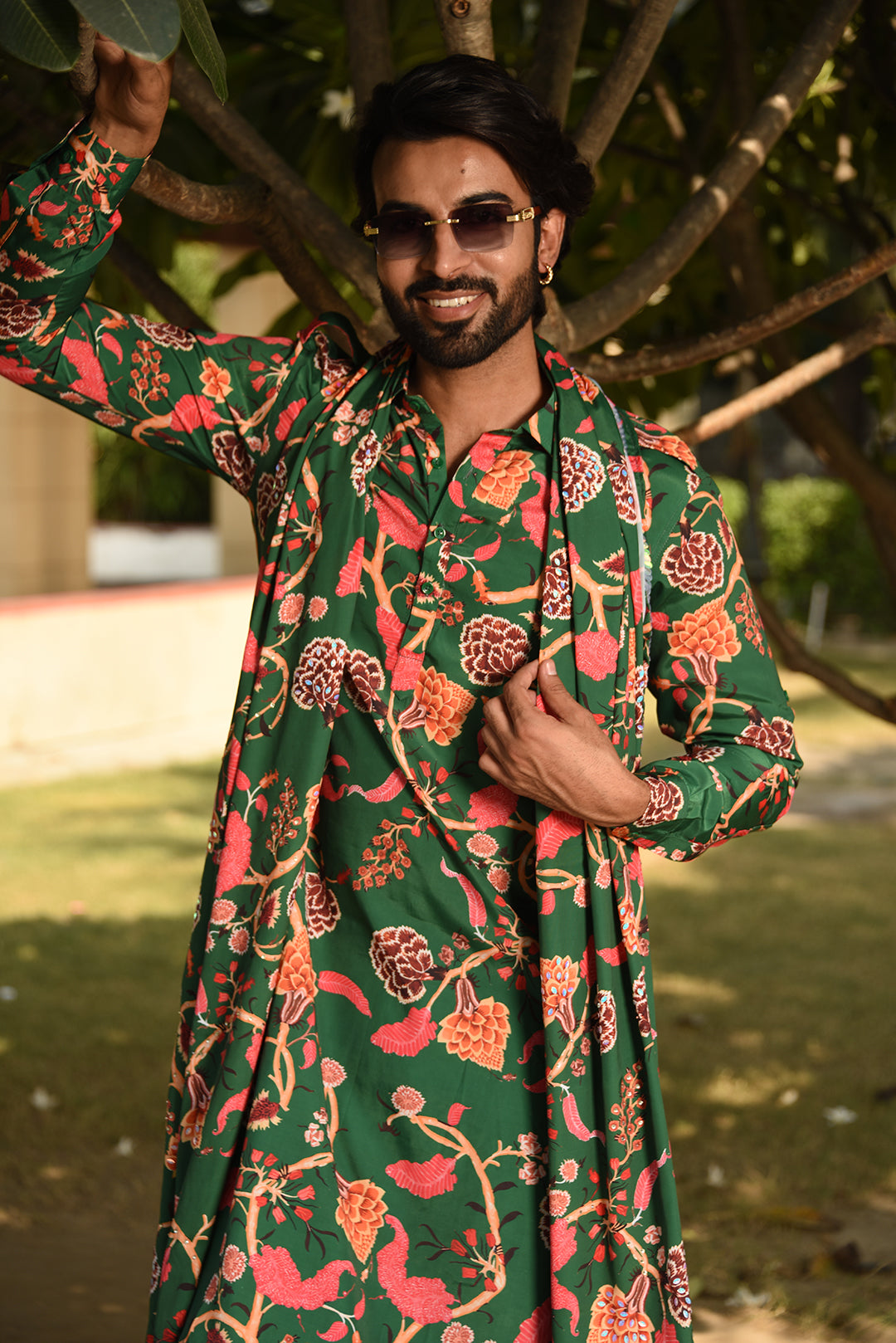 Unleash your playful side with this unique Forest Green Printed Pathani Kurta Set! Complete with a matching dupatta, this quirky and fun outfit is perfect for any occasion. Embrace your individuality and stand out in this stylish and comfortable ensemble.