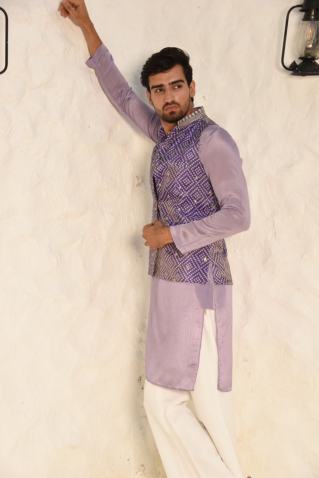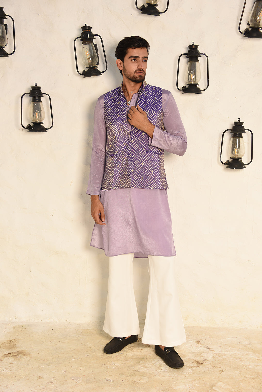 LILAC CHINON STRAIGHT KURTA SET WITH BANDHI JACKET