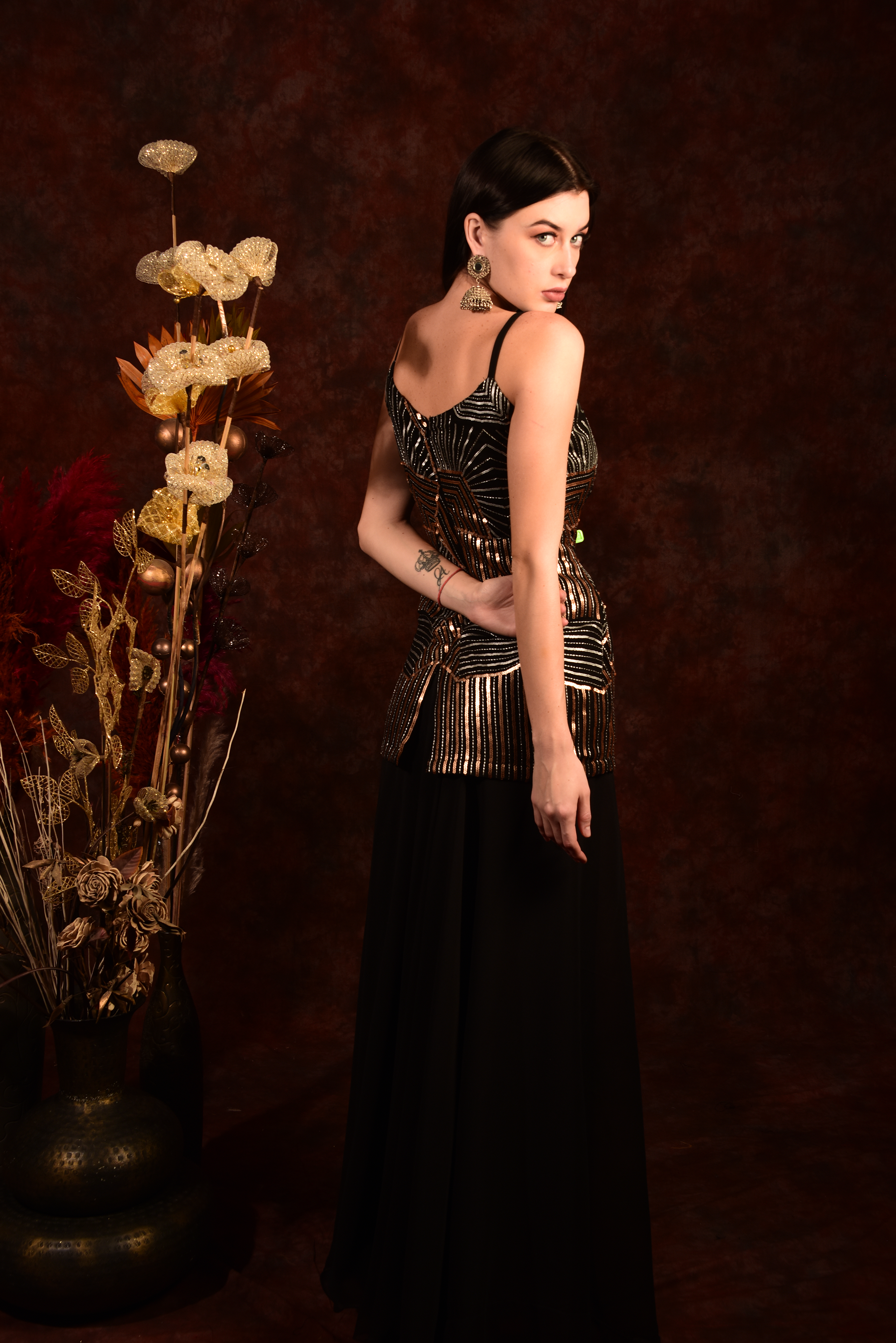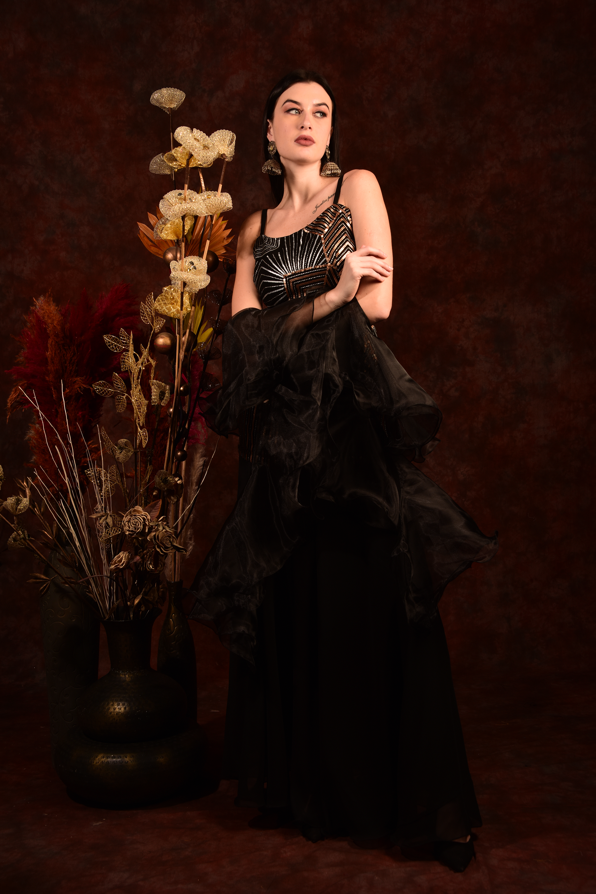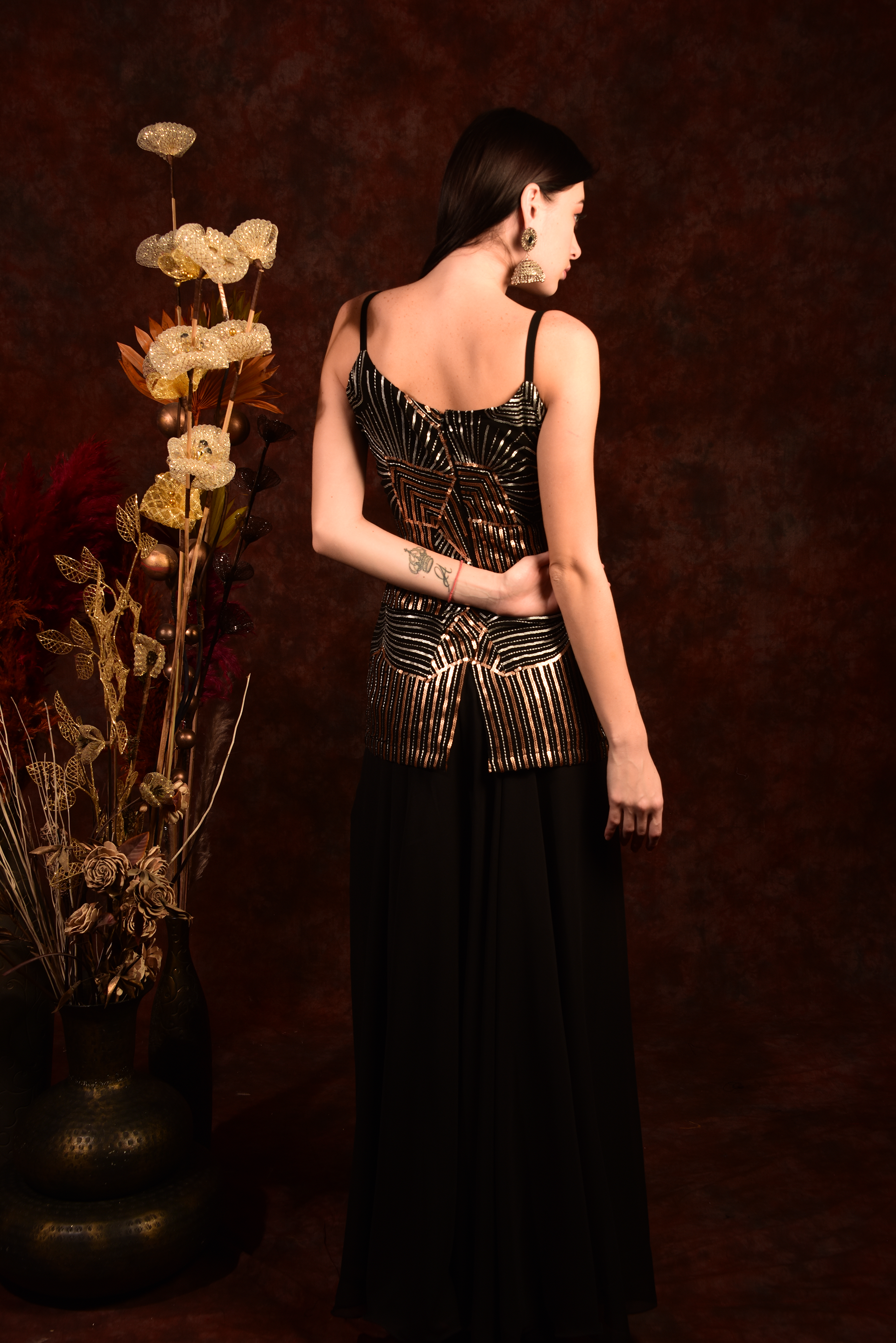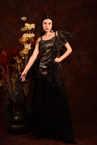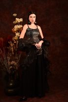 Black Straight Kurti With Palazzo And Ruffle Dupatta