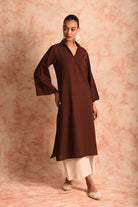 Expertly crafted and designed for summer, this solid brown linen co-ord set features a sleek collar neckline and flowy, non-transparent bottoms. Made from high-quality, less wrinkled linen, it offers both style and comfort. Perfect for any summer occasion.