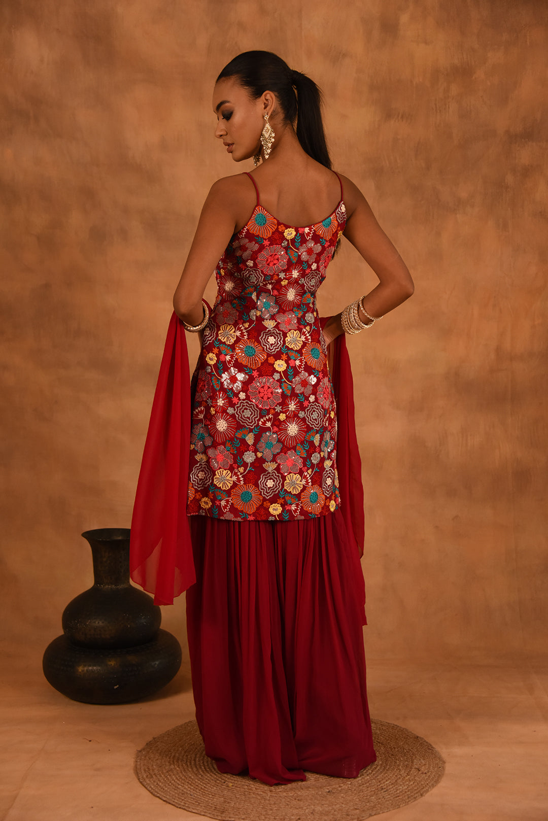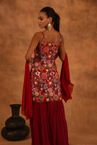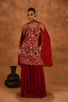 RED FLORAL GEORGETTE SHARARA SET