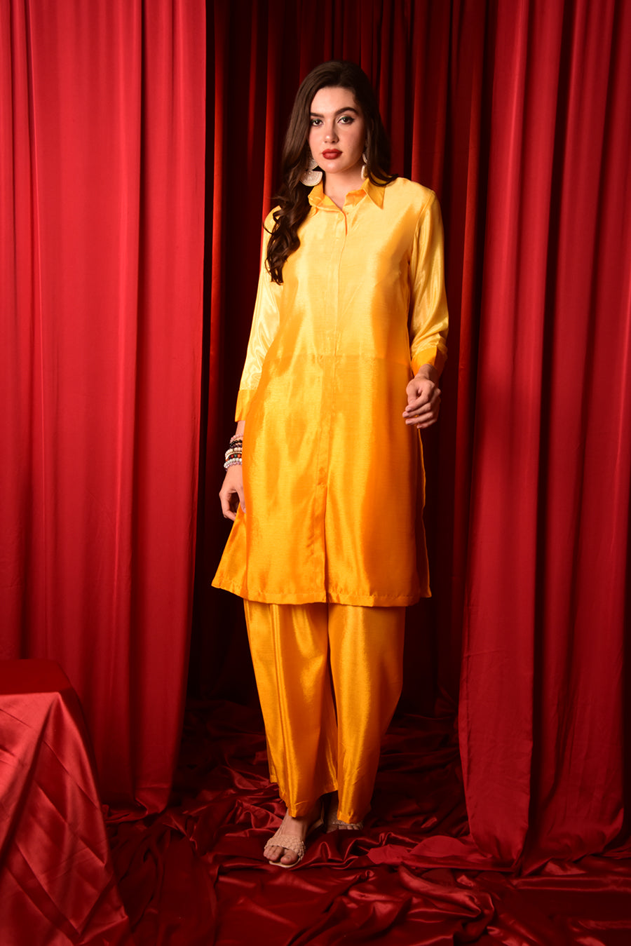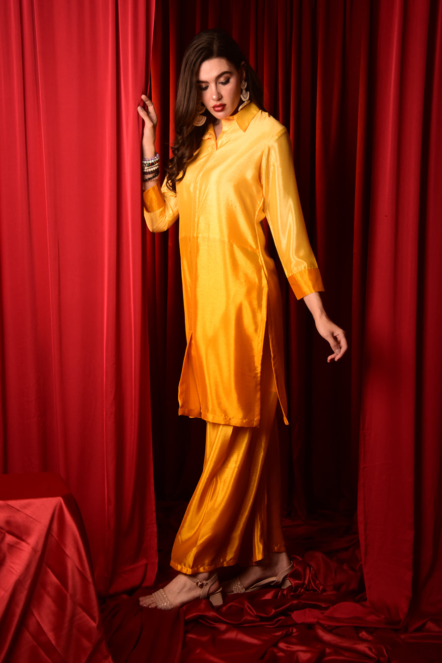 YELLOW COLLAR NECK STRAIGHT CO-ORD SET