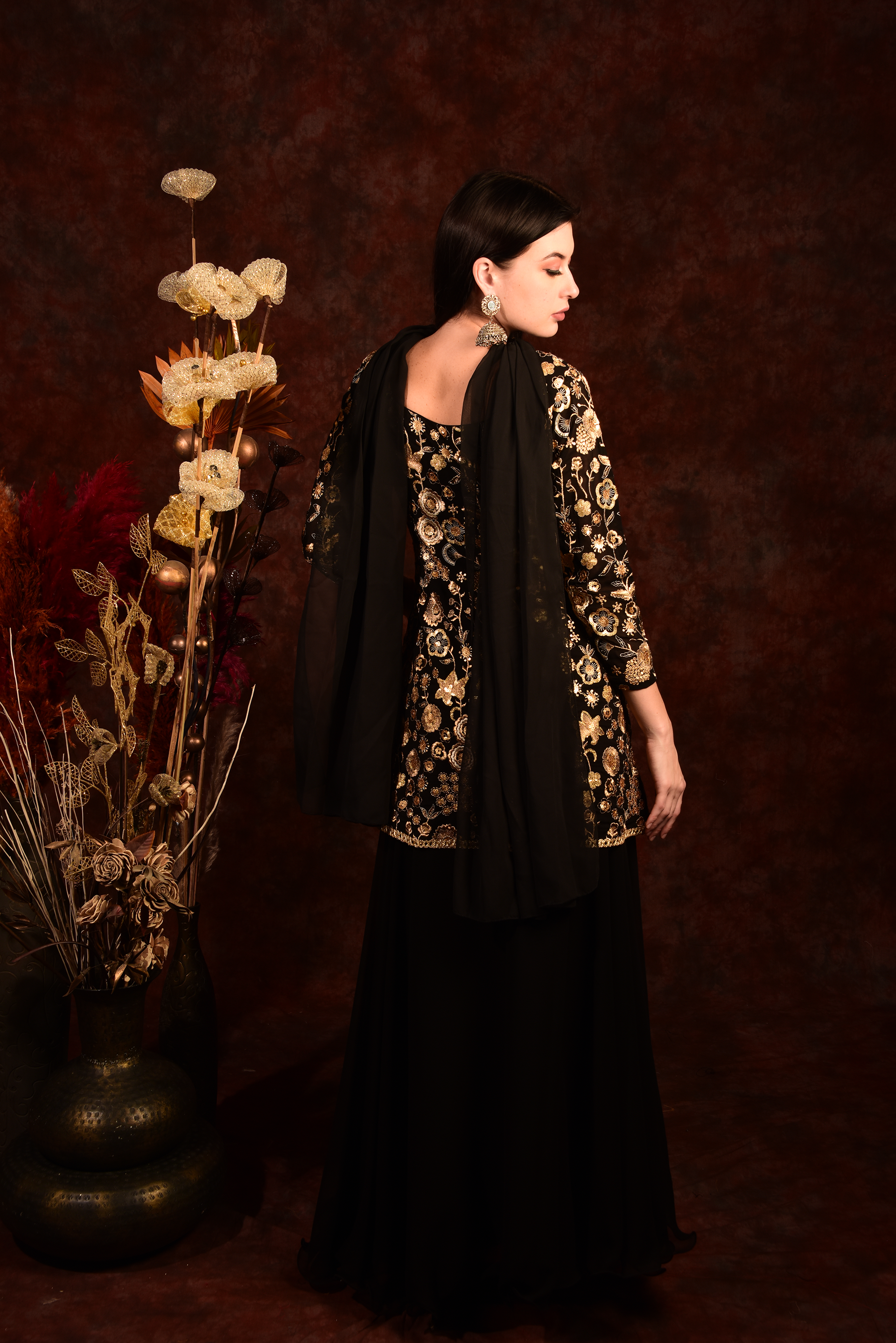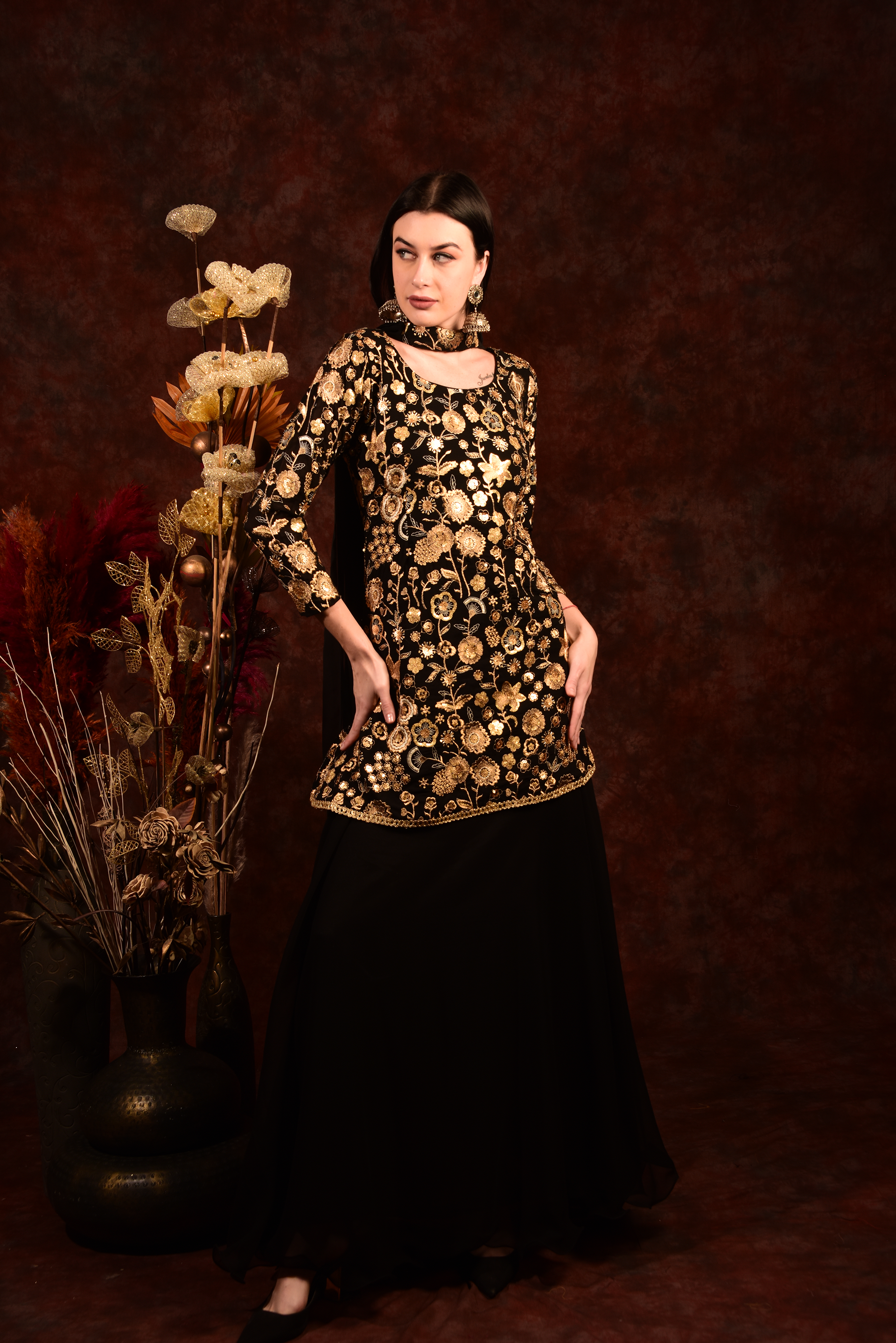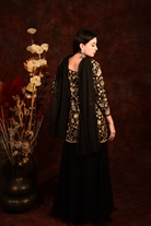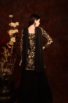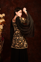 Black Golden Floral Peplum Top With Skirt And Dupatta