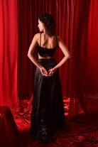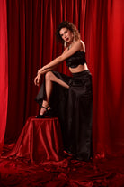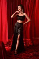 Indulge in the ultimate in luxury and sophistication with our BLACK HIGH-SLIT SKIRT WITH CROP TOP. Experience the allure of a super sexy silhouette with the high-slit skirt, paired perfectly with the figure-flattering crop top. Elevate your style and turn heads with this ensemble that exudes elegance and exclusivity.