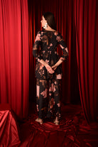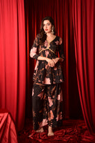 BLACK FLORAL PRINTED PEPLUM TOP WITH PALAZZO