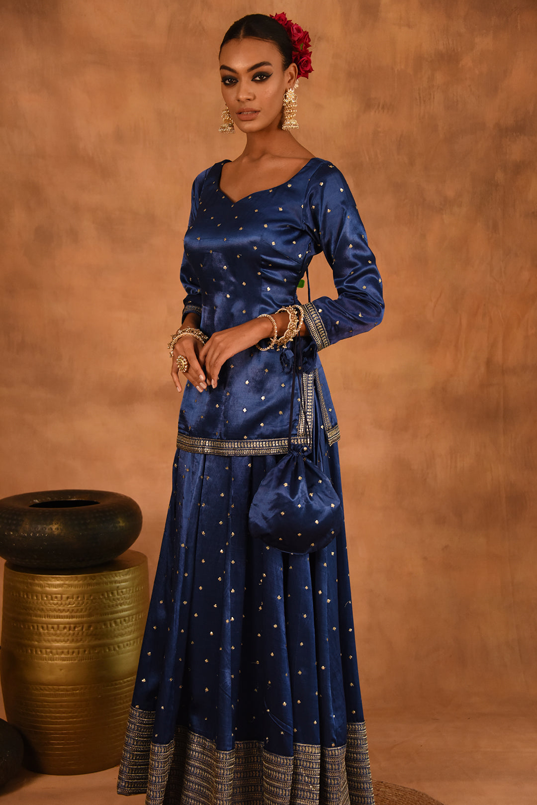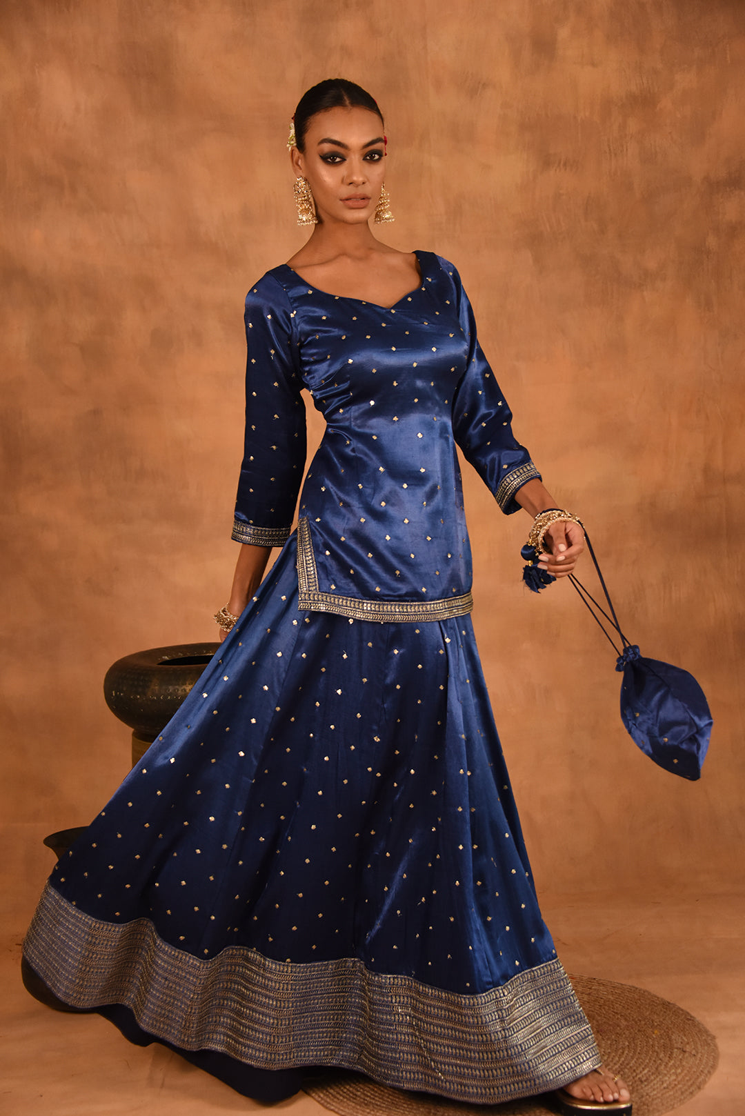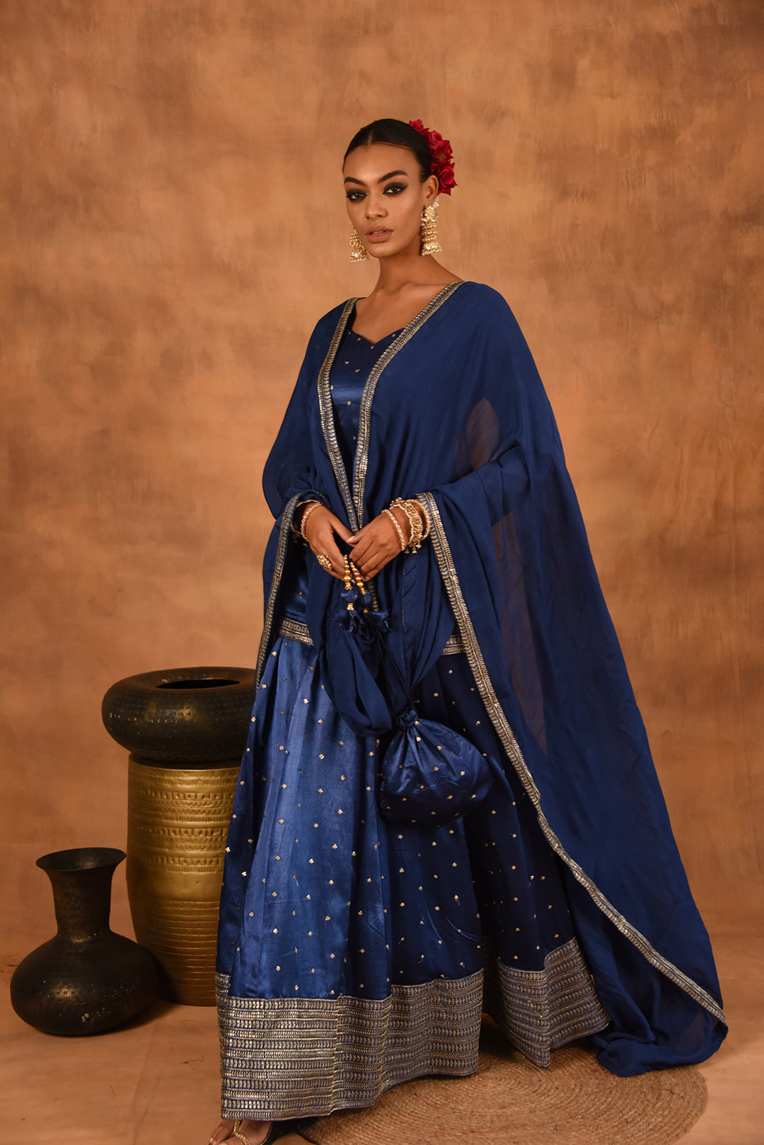 ROYAL BLUE GAJJI SILK LEHENGA