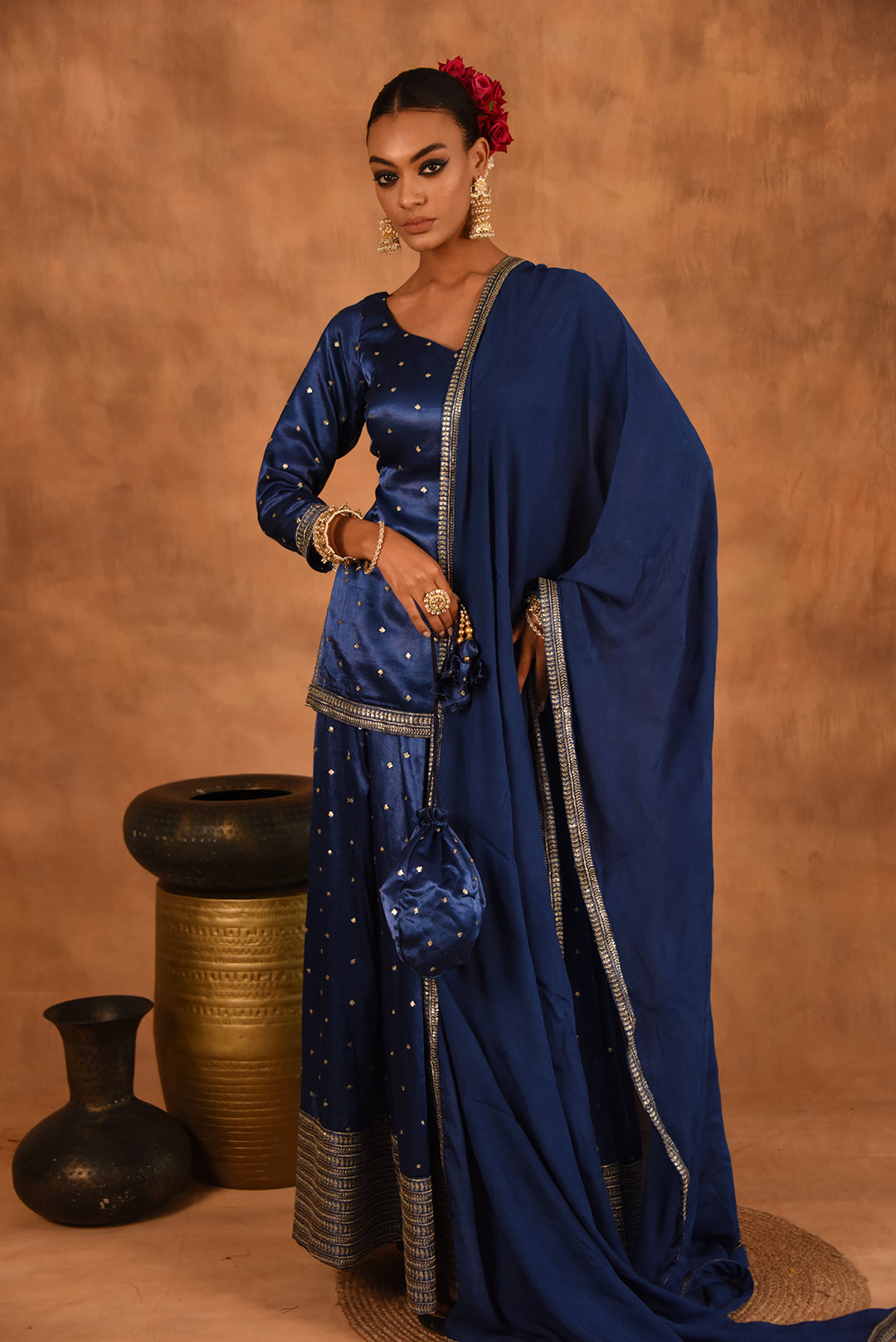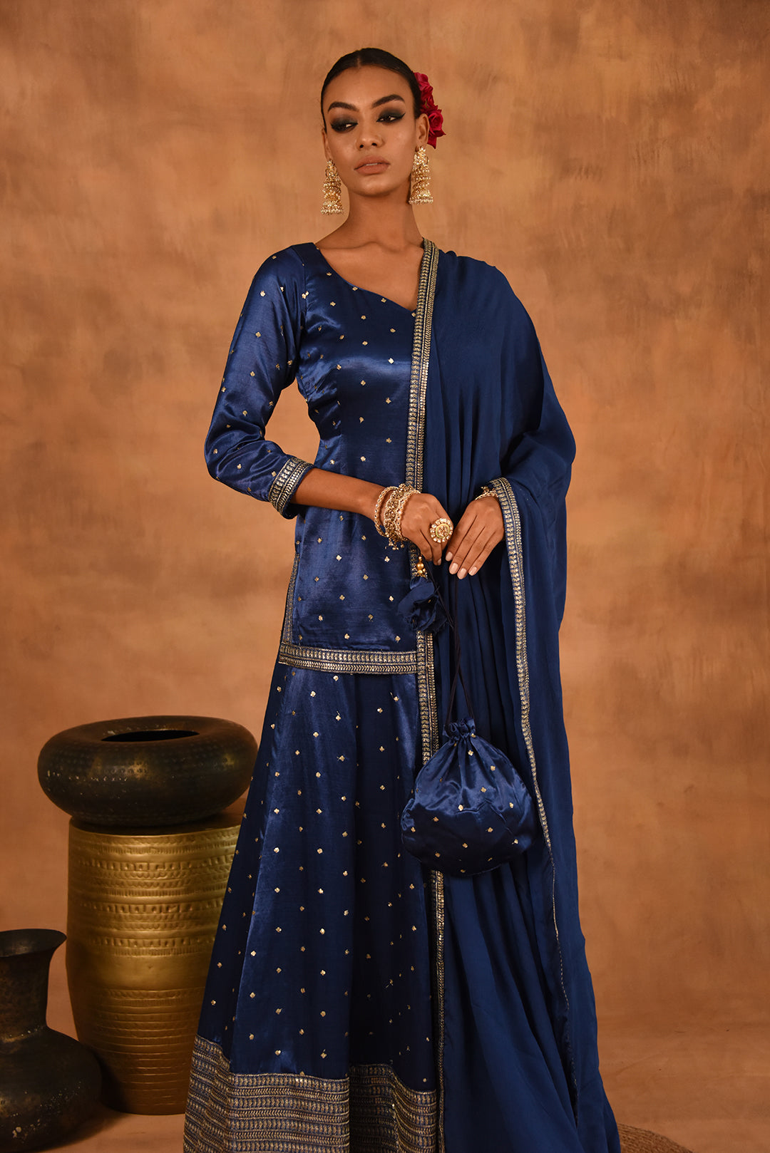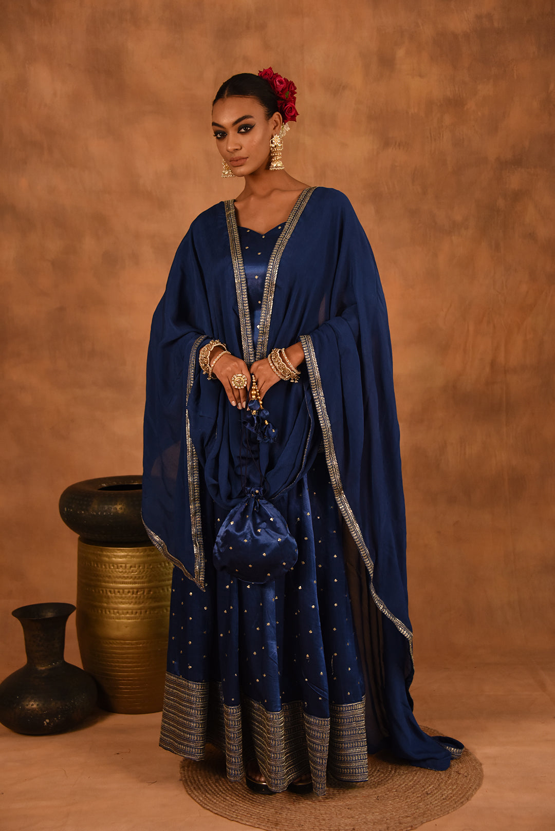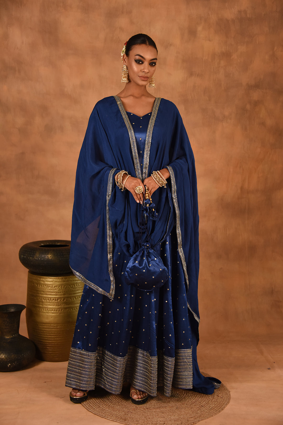 ROYAL BLUE GAJJI SILK LEHENGA